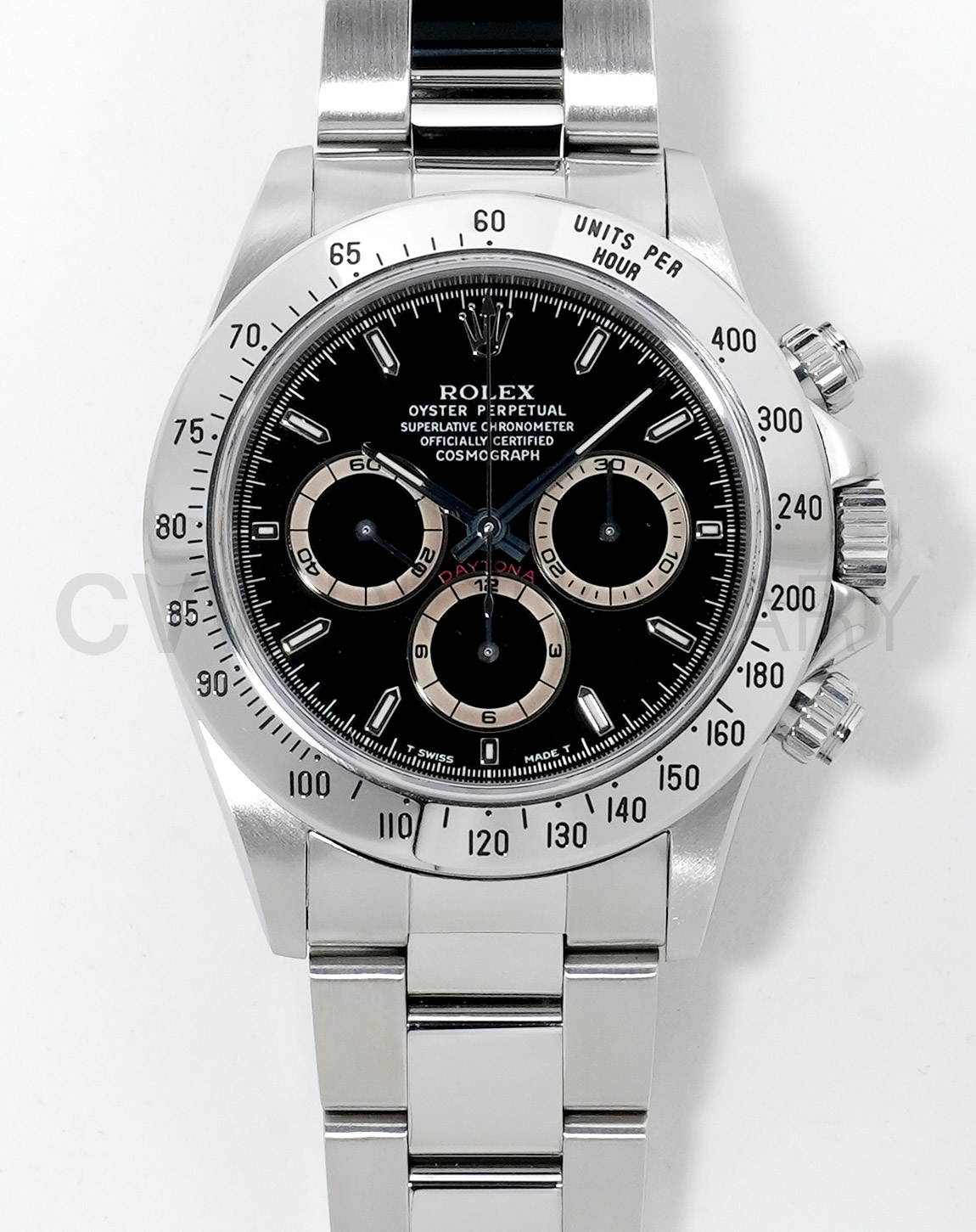 ドライヴィングとスピードに情熱を捧げる人々の究極の実用時計「コスモグラフ デイトナ」は、プロのカーレーサーのニーズに応えて1963年に誕生したモデル。ゼニス社の「エル・プリメロ」をベースとしたCal.4030を搭載した本機はクラシックな雰囲気のあるモデルで根強い人気があります。
