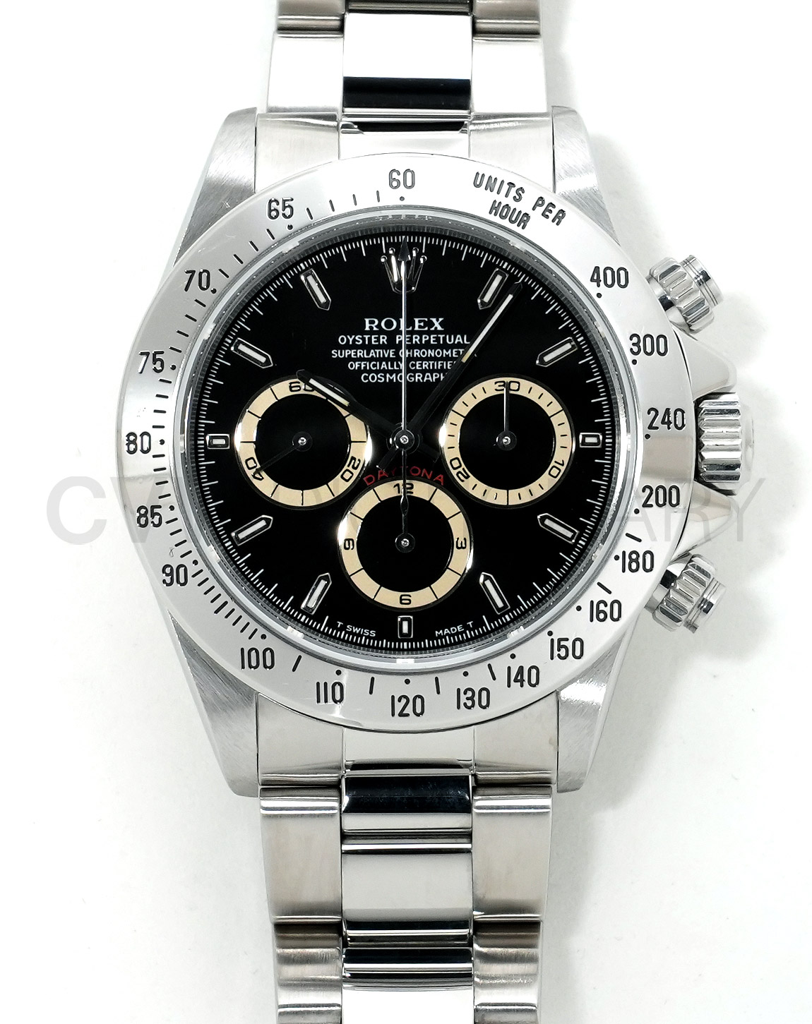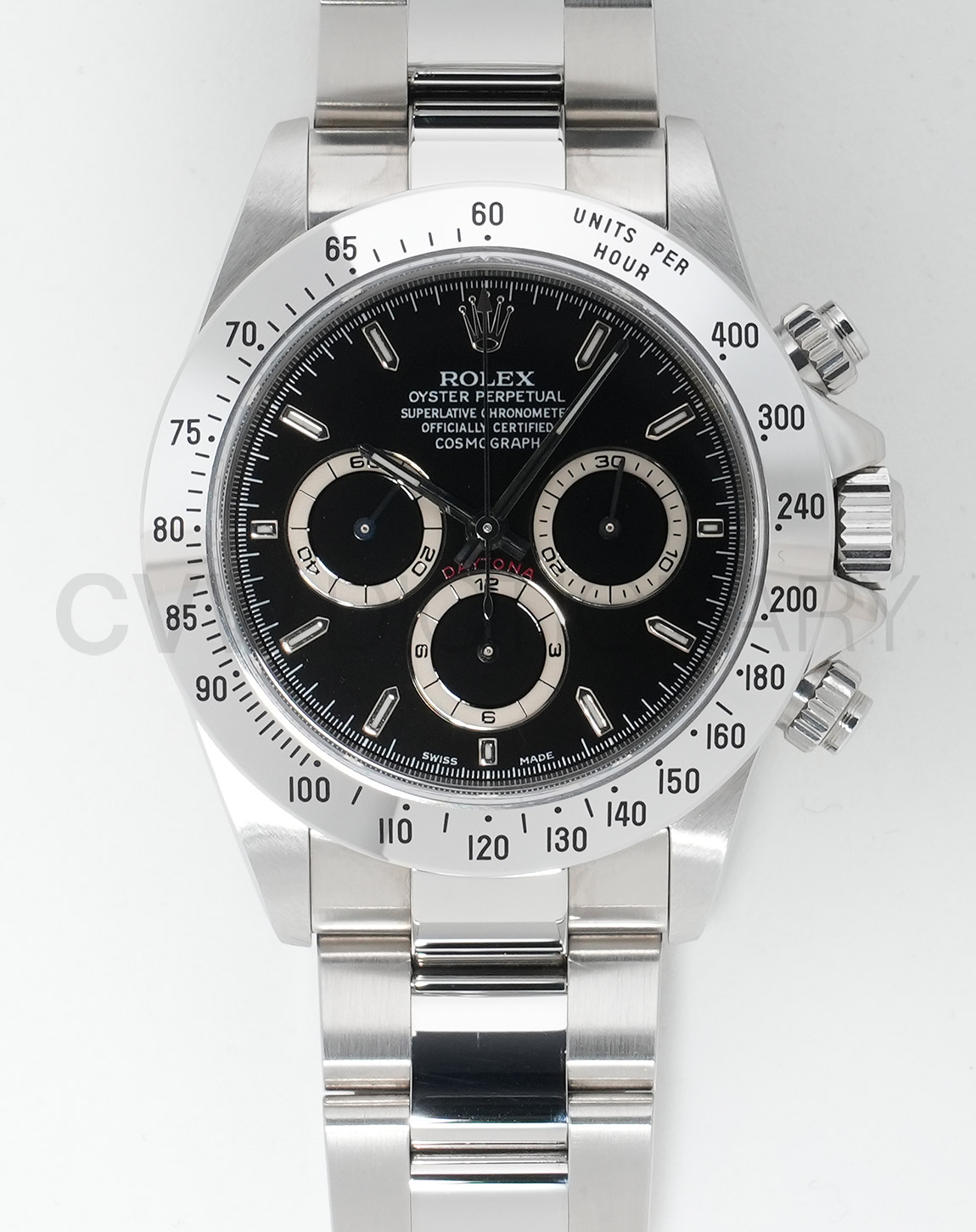 ドライヴィングとスピードに情熱を捧げる人々の究極の実用時計「コスモグラフ デイトナ」は、プロのカーレーサーのニーズに応えて1963年に誕生したモデル。ゼニス社の「エル・プリメロ」をベースとしたCal.4030を搭載した本機はクラシックな雰囲気のあるモデルで根強い人気があります。