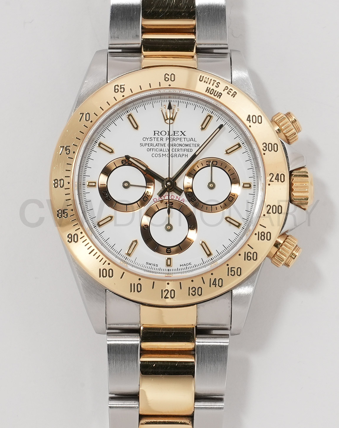 ドライヴィングとスピードに情熱を捧げる人々の究極の実用時計「コスモグラフ デイトナ」は、プロのカーレーサーのニーズに応えて1963年に誕生したモデル。ゼニス社の「エル・プリメロ」をベースとしたCal.4030を搭載した本機はクラシックな雰囲気のあるモデルで根強い人気があります。