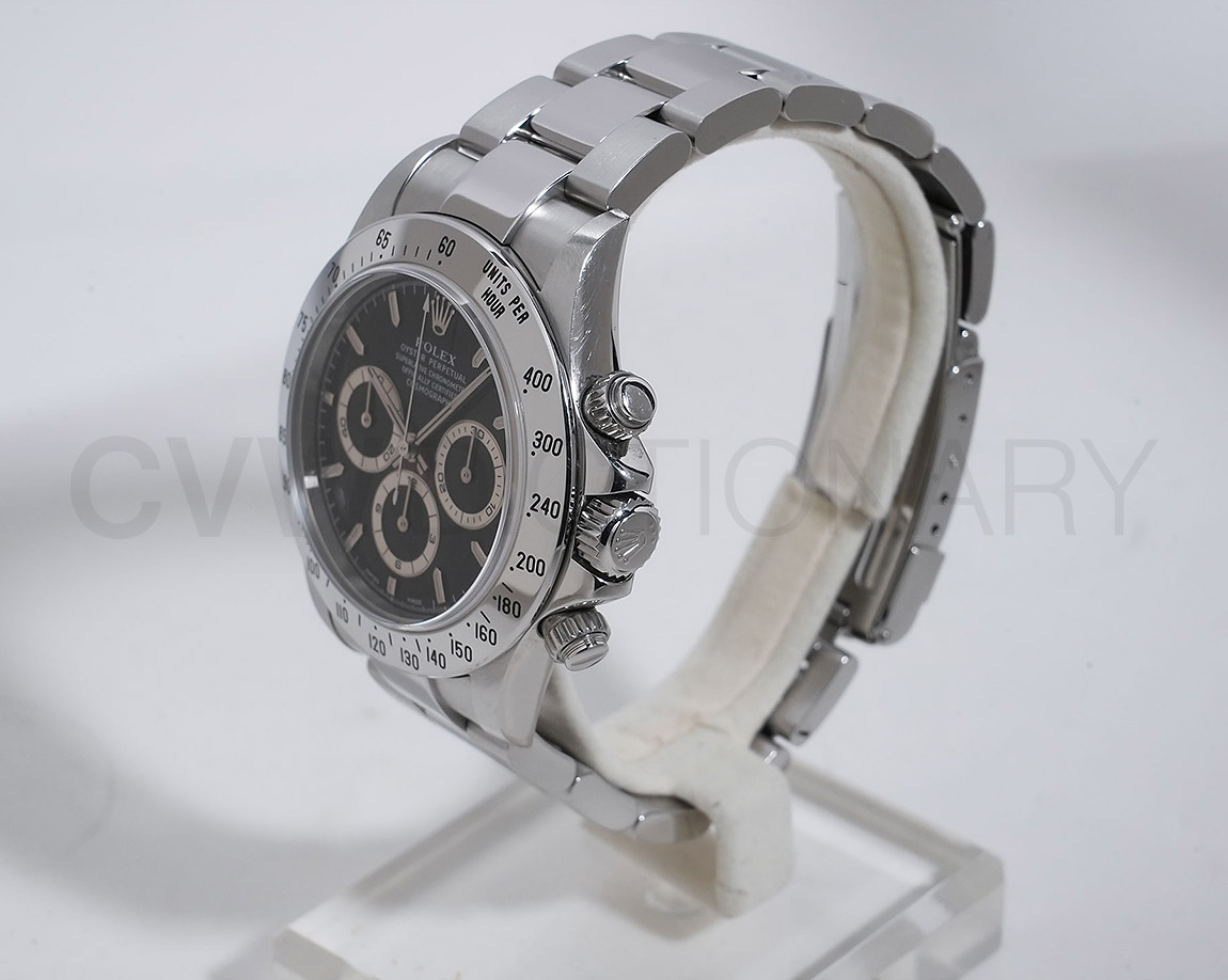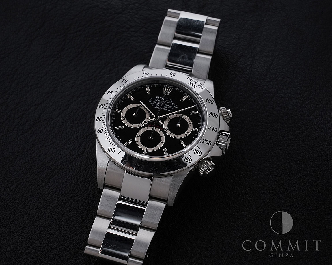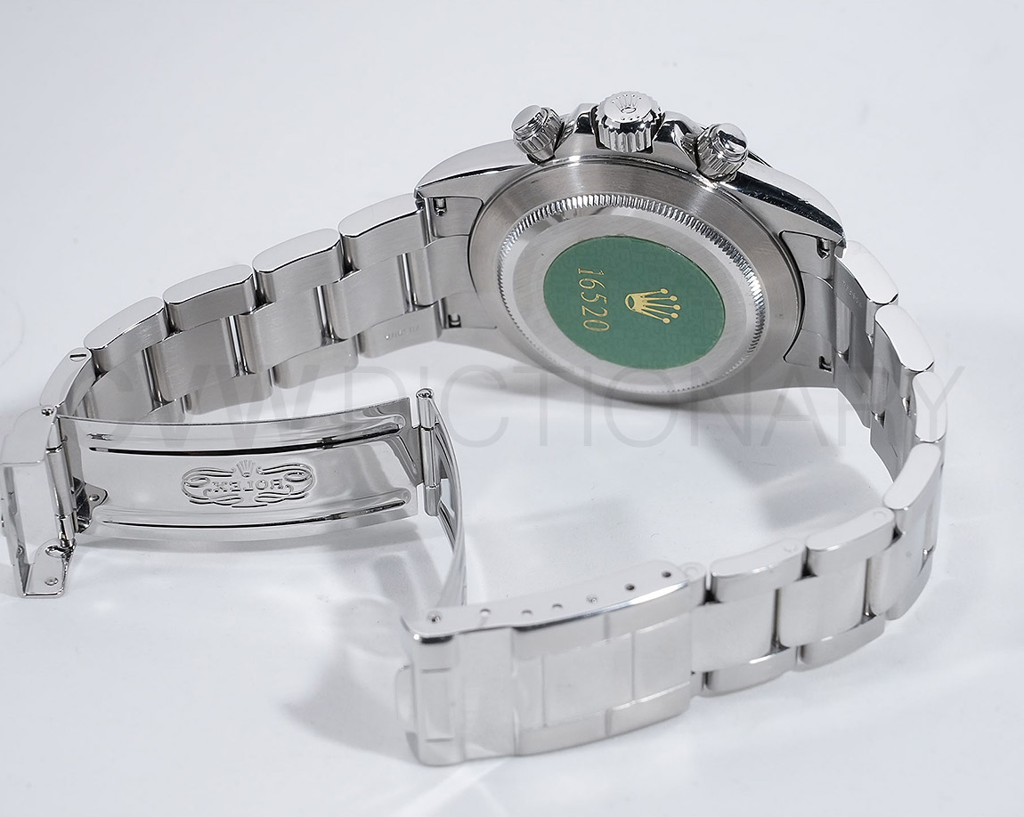 ケース、ブレスレットには使用に伴うスレ、キズが見られますが、ノンポリッシュを思わせる非常にしっかりとした印象の個体で、裏蓋にはキレイに「Ref.16520」シールが綺麗に残っております。雰囲気の良いエルプリデイトナをお探しの方に大変オススメとなっておりますので、是非ご検討ください。