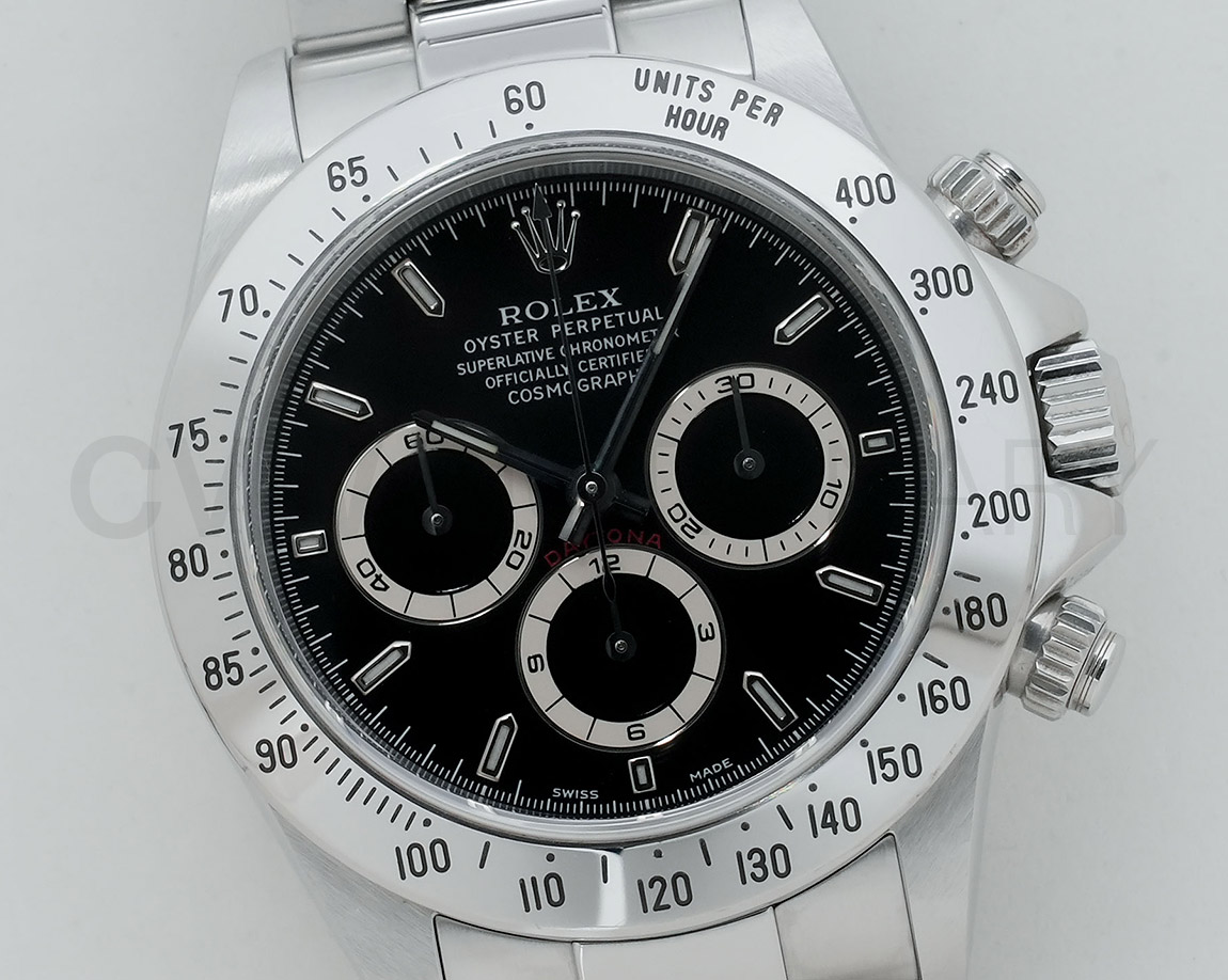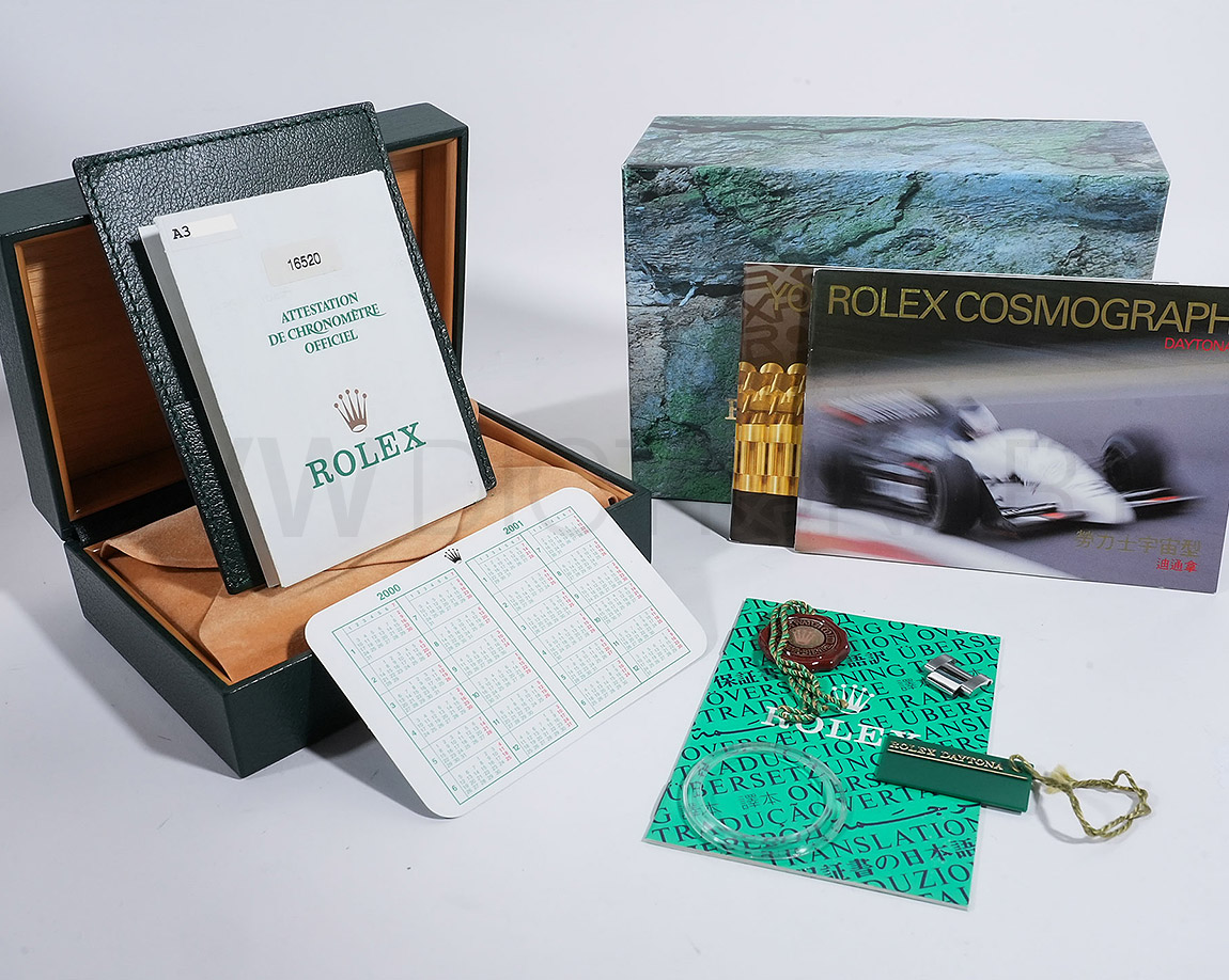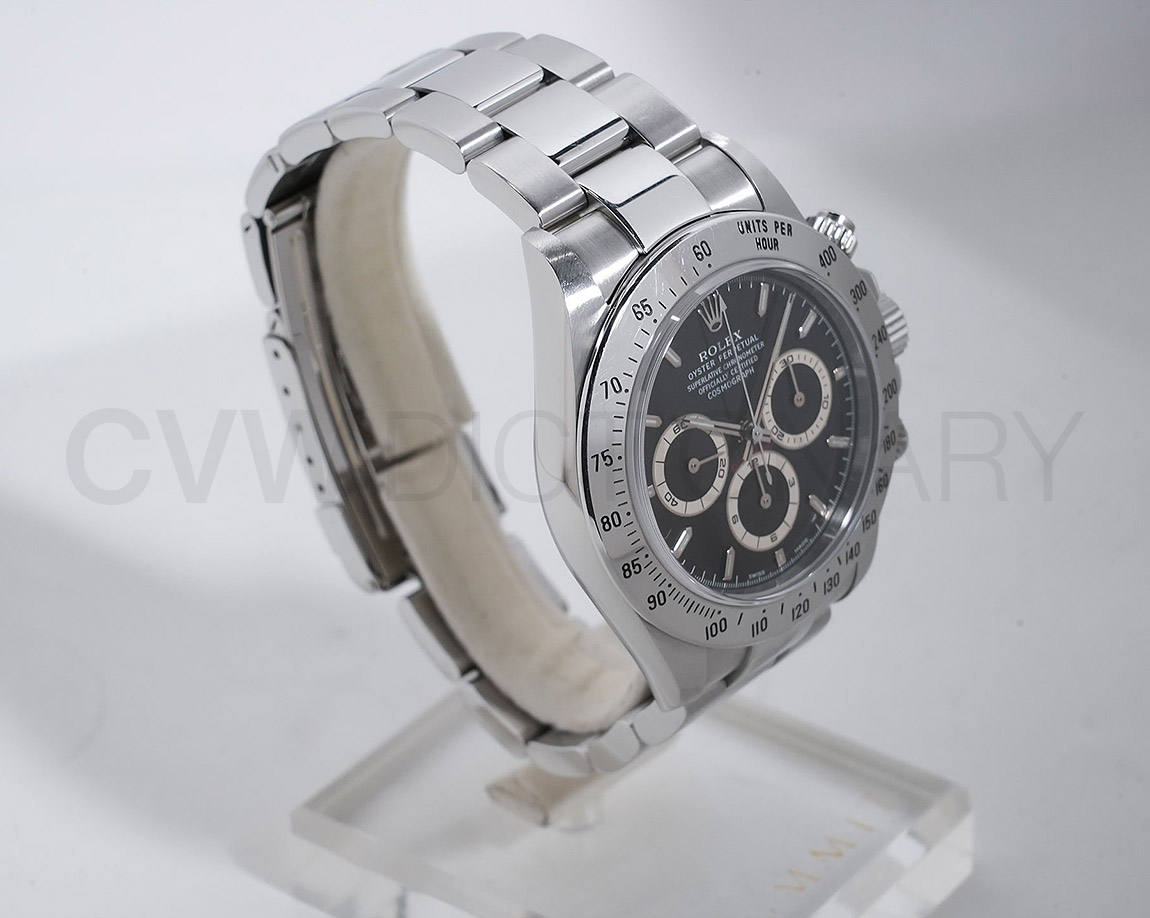 ケース、ブレスレットには使用に伴うスレ、キズが見られますが、ノンポリッシュを思わせる非常にしっかりとした印象の個体で、裏蓋にはキレイに「Ref.16520」シールが綺麗に残っております。雰囲気の良いエルプリデイトナをお探しの方に大変オススメとなっておりますので、是非ご検討ください。