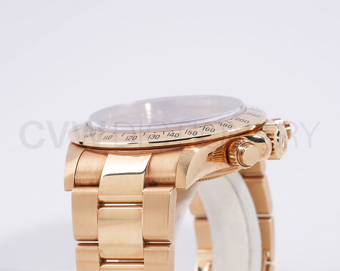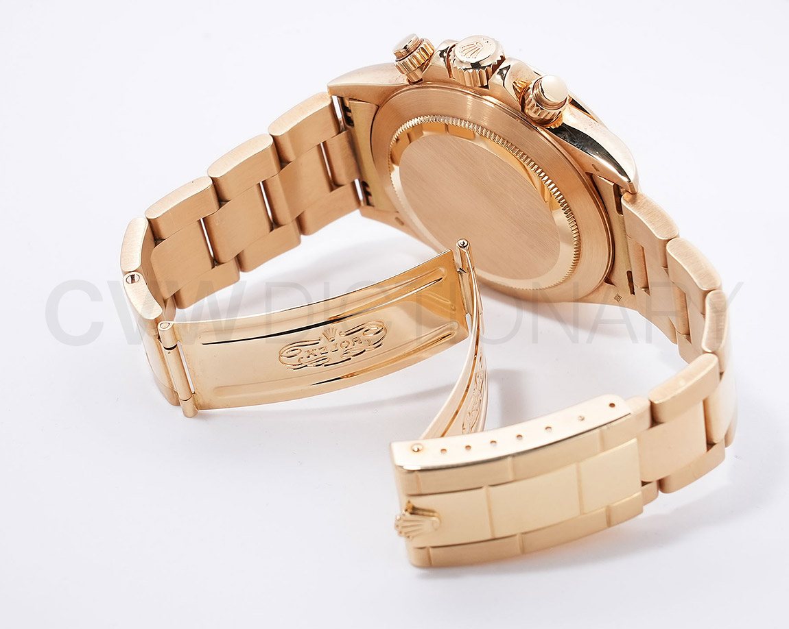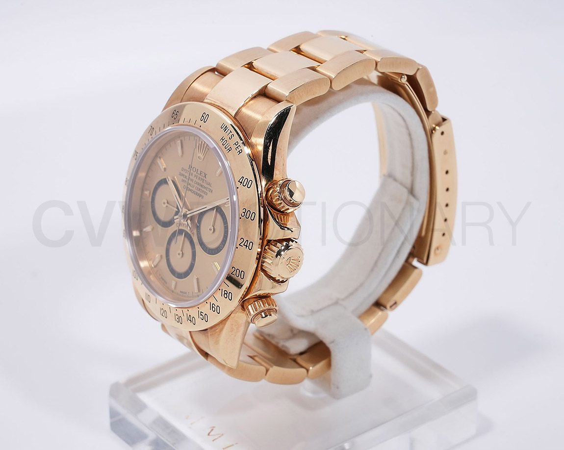 ドライヴィングとスピードに情熱を捧げる人々の究極の実用時計「コスモグラフ デイトナ」は、プロのカーレーサーのニーズに応えるよう設計され、1963年に誕生しました。こちらは金無垢ケースにシャンパンゴールド文字盤を組み合わせた高級感ある一本です。