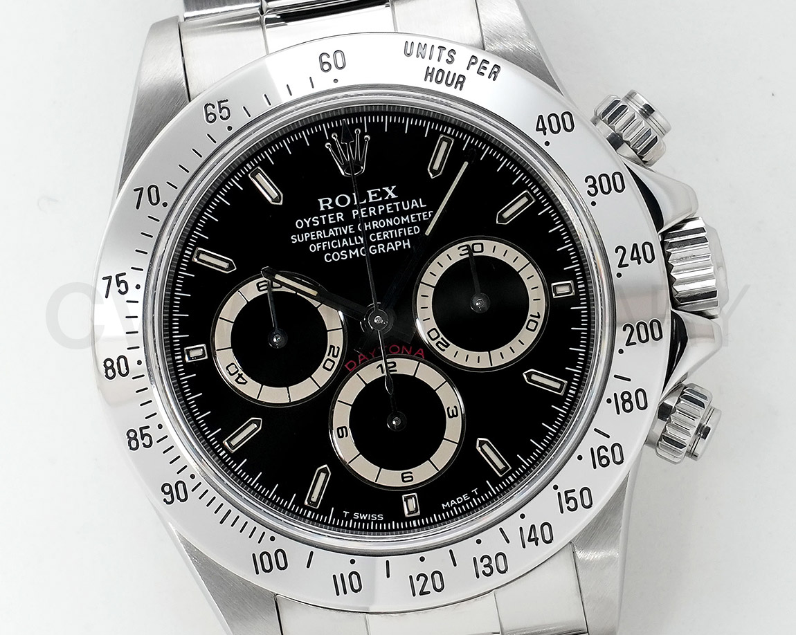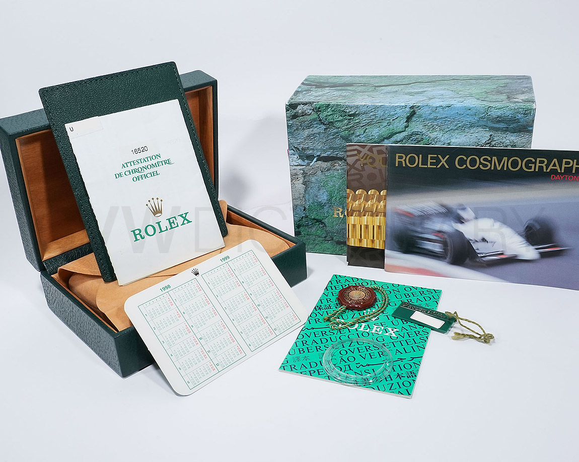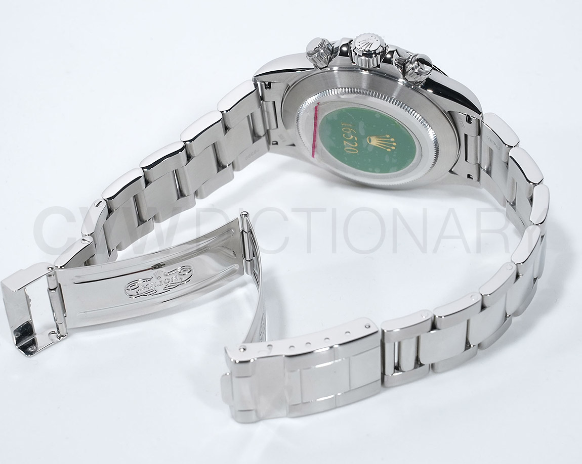 使用に伴うスレキズがございますが、比較的綺麗な状態をキープした良個体です。ケースは太くエッジが立っており、ベゼルも丸みを感じられず全体的な印象がかなり良い個体となっております。夜光はオールトリチウムとなっており、文字盤も非常に綺麗な状態となっております。裏蓋シールは綺麗に残っており、付属品も充実しておりますので、Ref.16520をお探しの方には非常にオススメな一本でございます。