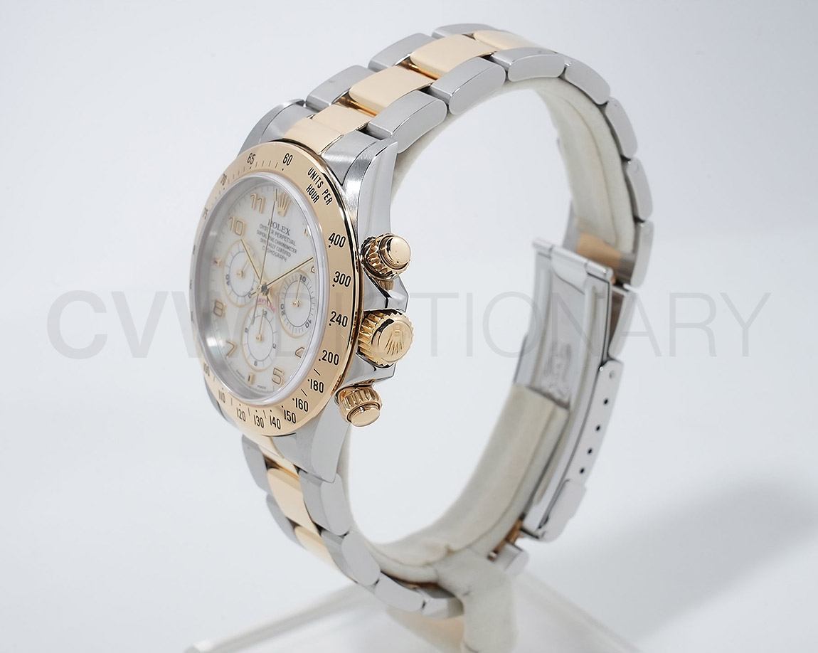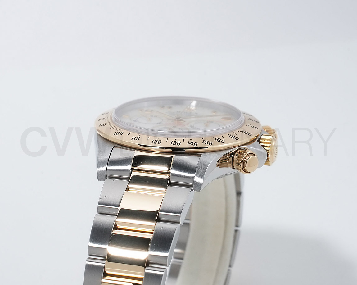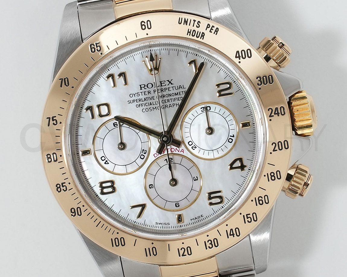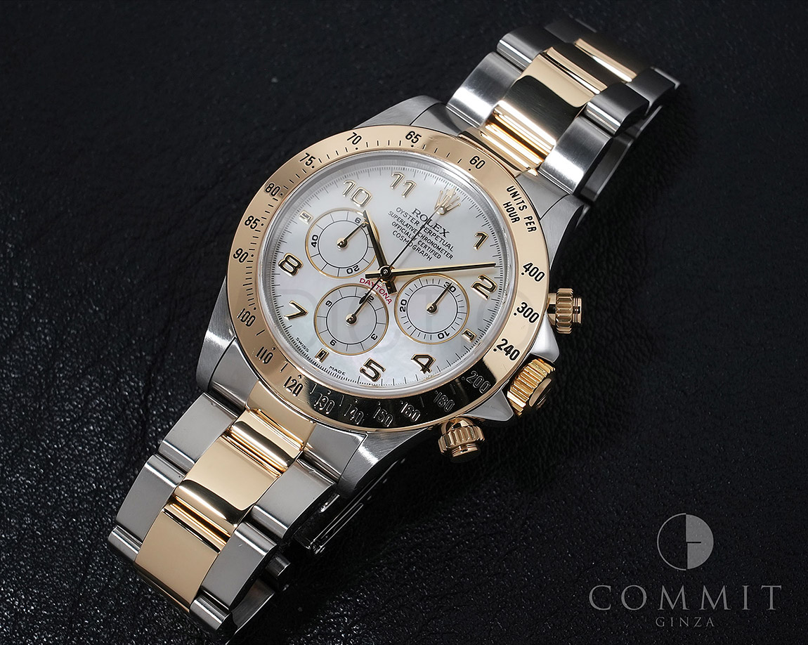 弊社提携工房にてオーバーホール、外装仕上げ済みの商品で、一部のキズ残り以外は目立つキズが無く綺麗な状態です。出回りが少ないホワイトシェルアラビア文字盤が魅力の1本で、保証書が付属しない分販売価格も抑えております。お探しの方は是非ご検討ください。