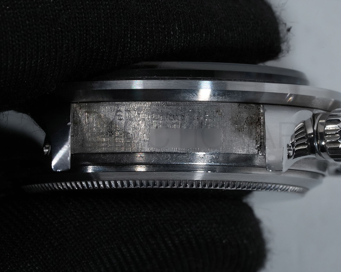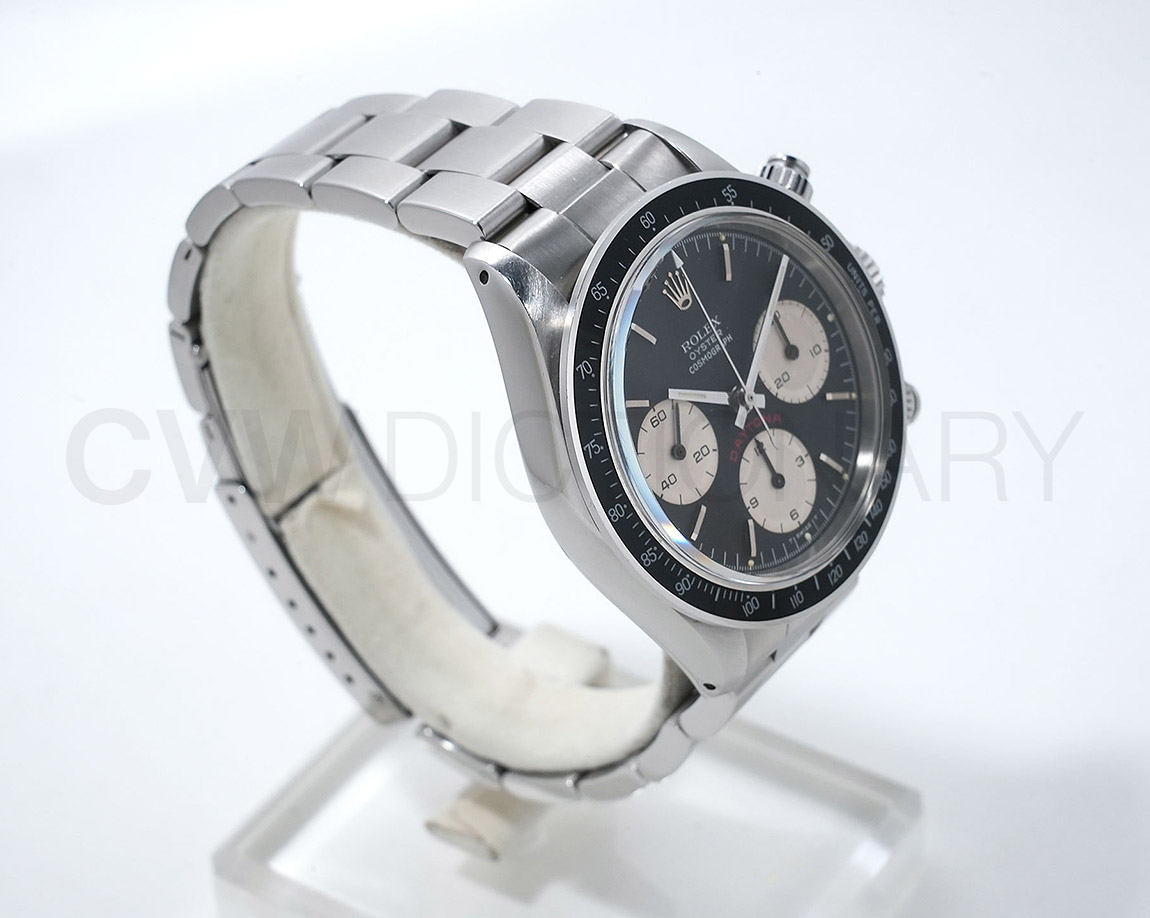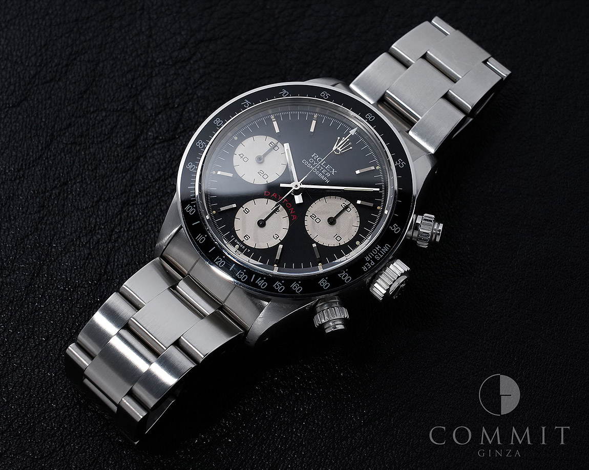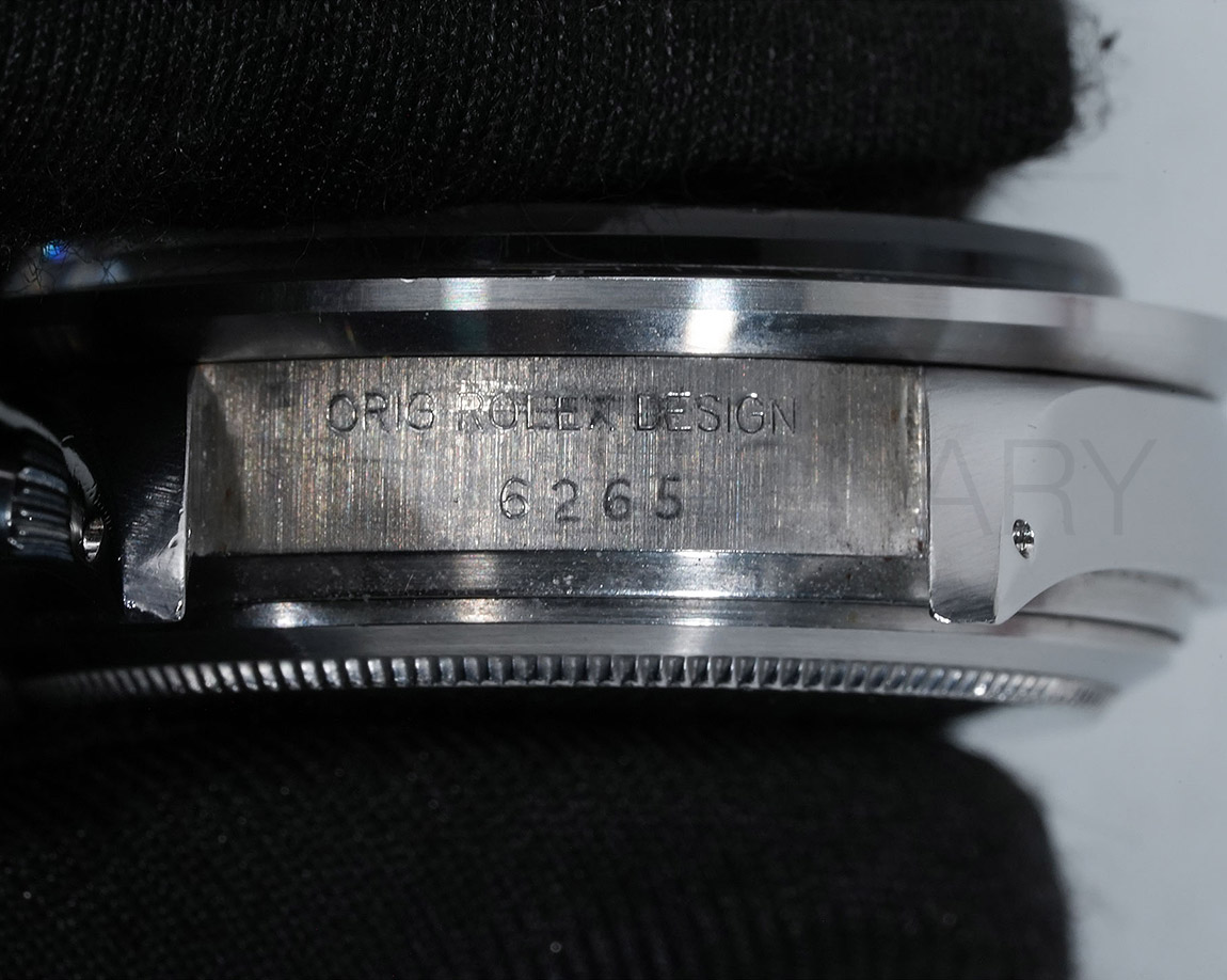 1971年頃より登場し、デイトナ第3世代となるのがこちらの「Ref.6265」で、プッシュボタンがねじ込みスクリューに、防水性は30mから50mへとスペックアップしており、手巻きクロノグラフムーブの完成型Cal.727が搭載されています。