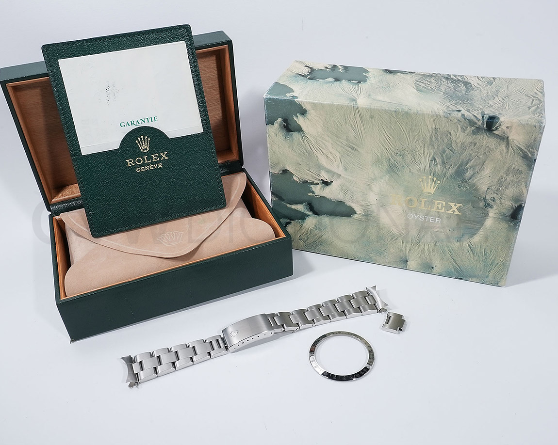 使用によるスレ、小キズがございますが、ケース、ブレスともにしっかりした良個体です。ブラックのビッグレッドダイヤルは3時6時位置に夜光修正がございますが、その他夜光はキレイに残っており、ダイヤルは全体的にキレイな状態です。現在、交換用のプラスチックベゼルが付いておりますが、年代の合ったステンレスベゼルも付属しており、価格が魅力的なオススメ商品になります。弊社提携工房にてオーバーホール済みの商品になります。※別途、557B/78350/S1のオイスターブレス(1コマ欠け12コマ)が付属しております。※保証書が付属しておりますが、当社では保証書がオリジナルという断定は致しかねます。