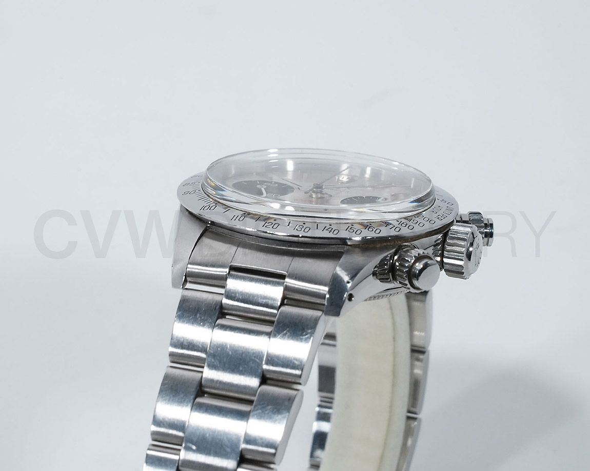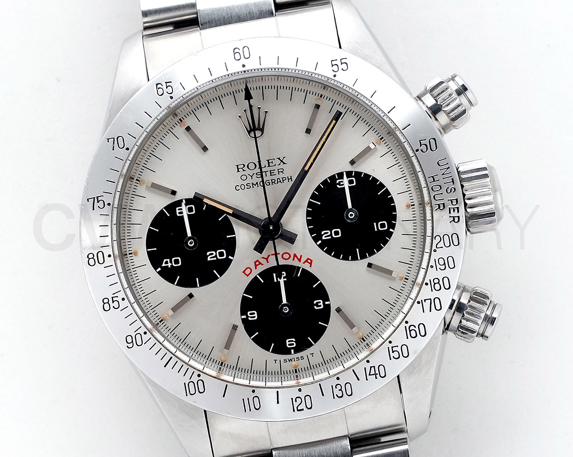 ロレックスで一番と言っても過言ではない人気モデル「デイトナ」年々、国内外で価格が高騰している手巻デイトナです。ステンレスベゼル仕様の「Ref.6265」は見た目がスッキリしていてツウ好みなデザインが、オススメです。