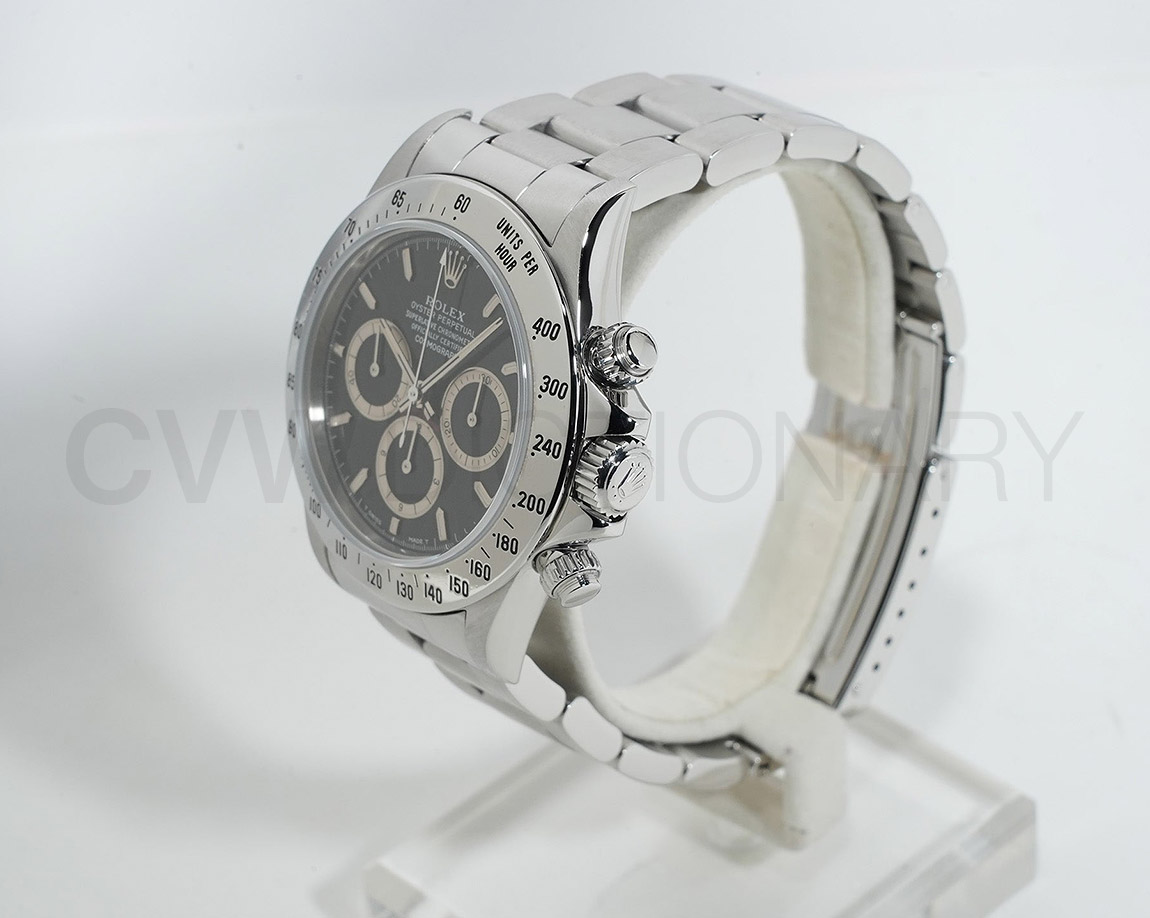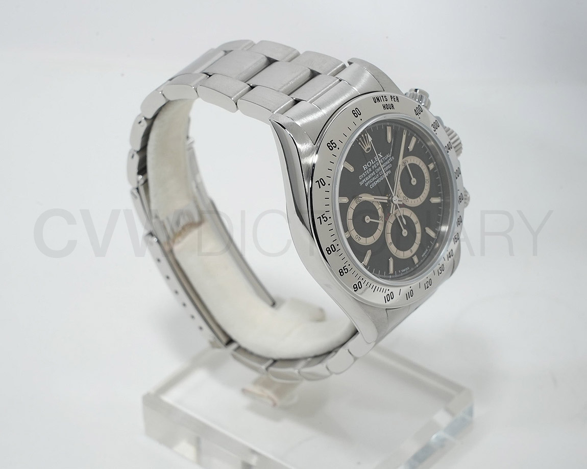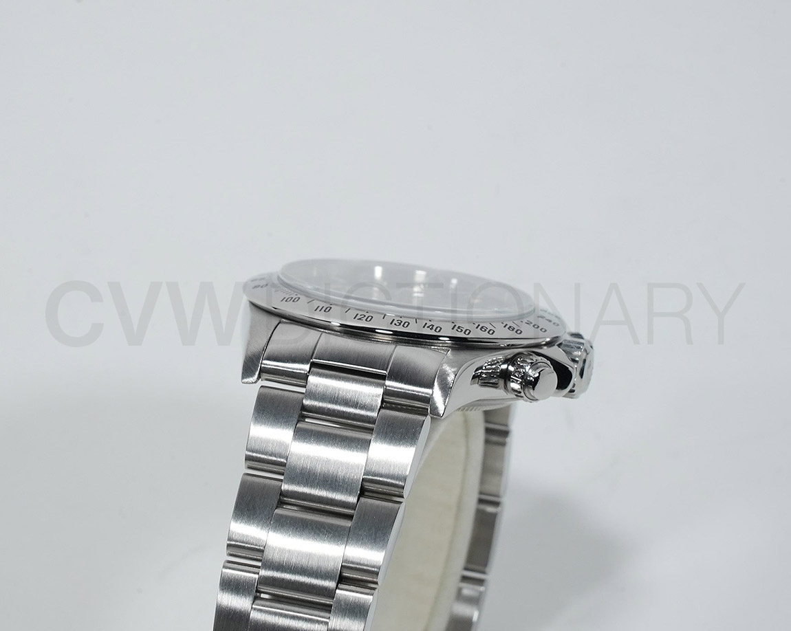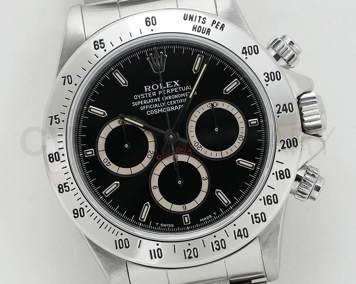 弊社提携工房にて外装仕上げ、オーバーホール済みの商品になりますので全体的に綺麗な状態を維持しております。初期逆6ダイヤルはルーペレベルの経年劣化がございますが、全体的に綺麗な状態です。箱・保証書・デイトナ冊子等付属品も充実しておりオススメセミヴィンテージ個体です。