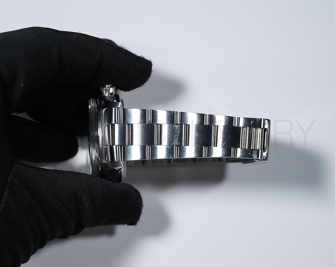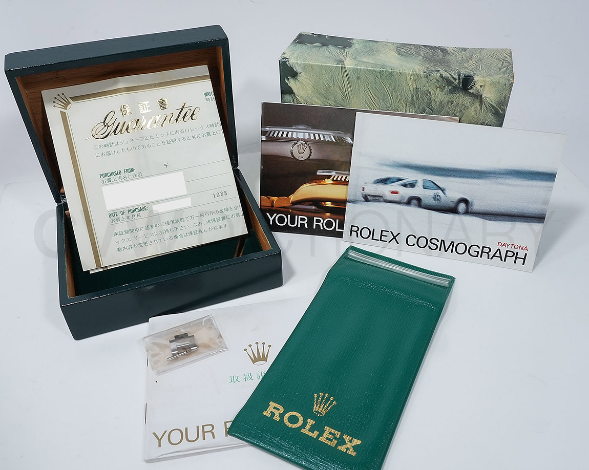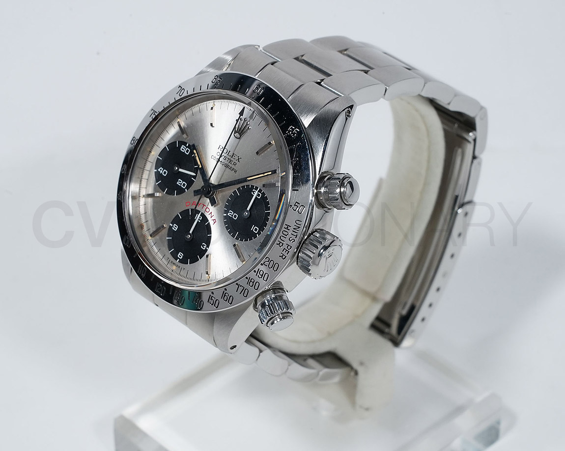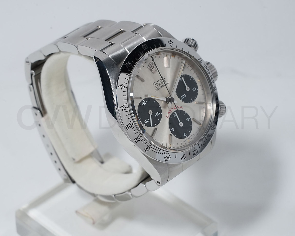 使用によるスレ、小キズがございますが、ケースは太くエッジが立っておりブレスも全くもってヨレが感じられない良個体です。シルバーのビッグレッドダイヤルは経年によるシミがございますが、インデックス夜光の欠落は見られません。当時の箱、保証書、デイトナ冊子等、付属品も充実しており、価格が魅力的なオススメヴィンテージデイトナです。