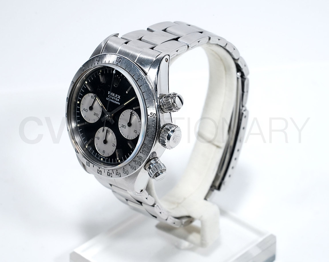 年代相応のスレキズが見られますが、大きな打ちキズは無く印象の良い個体です。希少なMk1ダイヤルは外周に多少の経年劣化がございますが、肉眼ではほぼ気にならないレベルで、ベゼルも年代の合ったMk1が装着されております。交換されているパーツはございますが、雰囲気の良いRef.6265の初期個体になりますので、お探しの方はぜひご検討ください。※文字盤、針の夜光は修正されており、秒針は交換されています。※フラッシュフィットは後年に交換されています。
