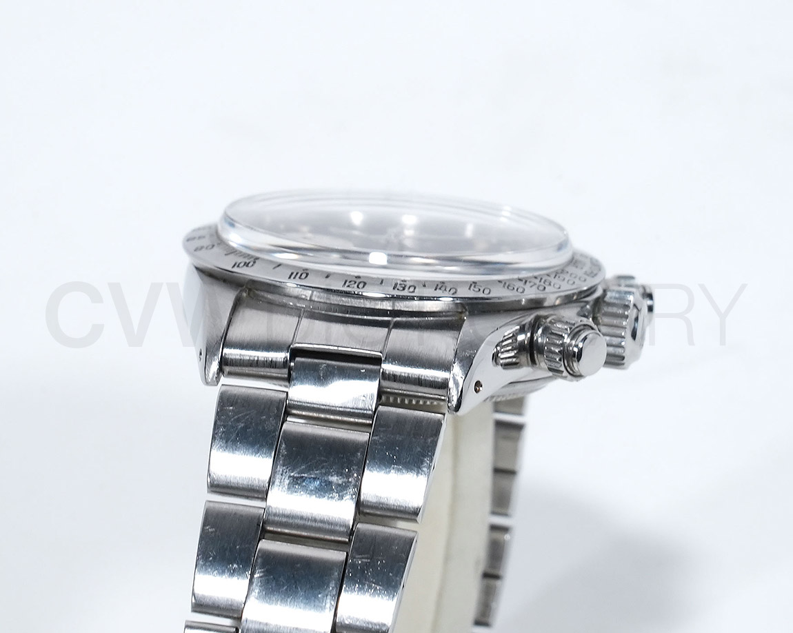 ロレックスで一番と言っても過言ではない人気モデル「デイトナ」年々、国内外で価格が高騰している手巻デイトナです。ステンレスベゼル仕様の「Ref.6265」は見た目がスッキリしていてツウ好みなデザインが、オススメです。