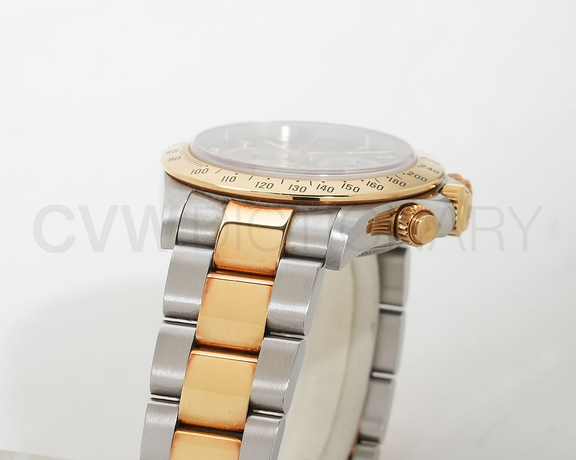 ドライヴィングとスピードに情熱を捧げる人々の究極の実用時計「コスモグラフ デイトナ」は、プロのカーレーサーのニーズに応えるよう設計され、1963年に誕生しました。誕生から50年経った今でもスポーツクロノグラフにおける比類なき存在として君臨し、時間を超越し続けています。こちらはステンレスとイエローゴールドのコンビモデル。