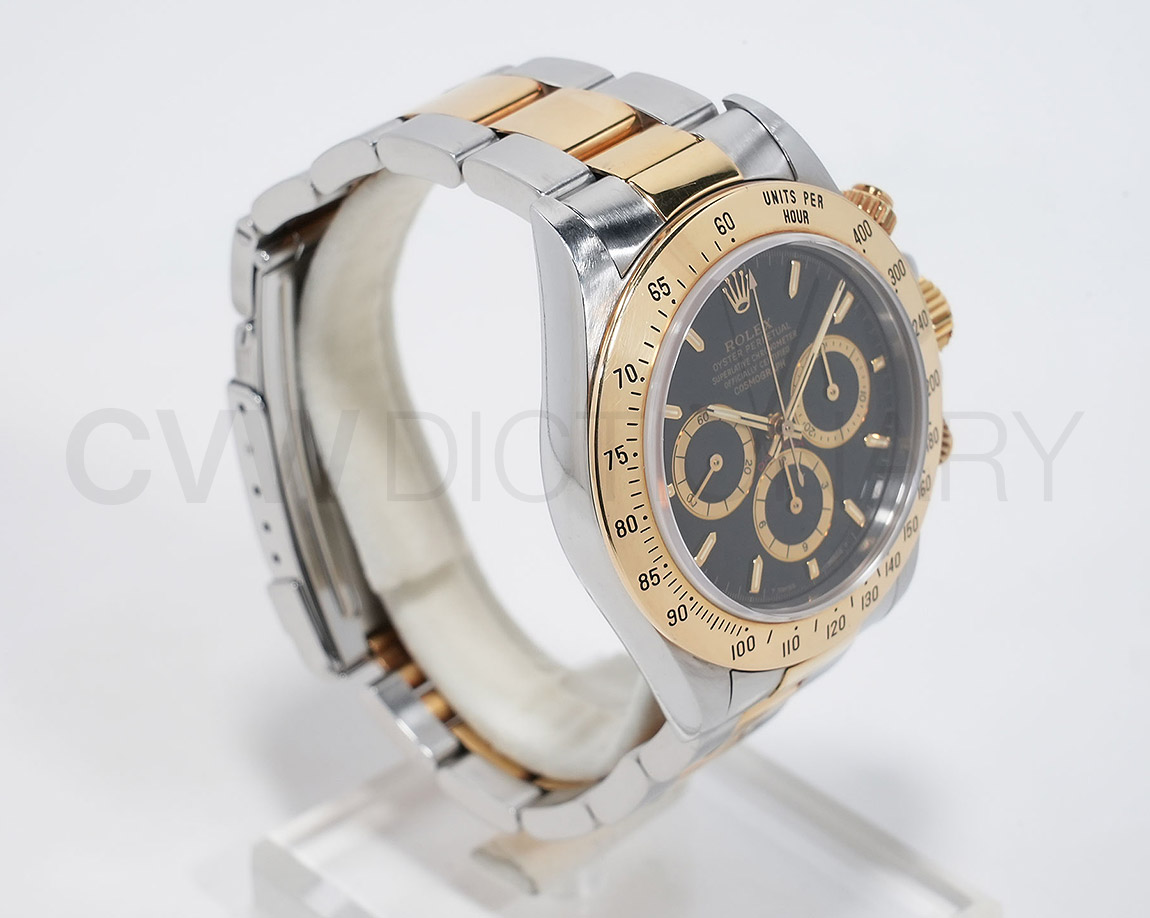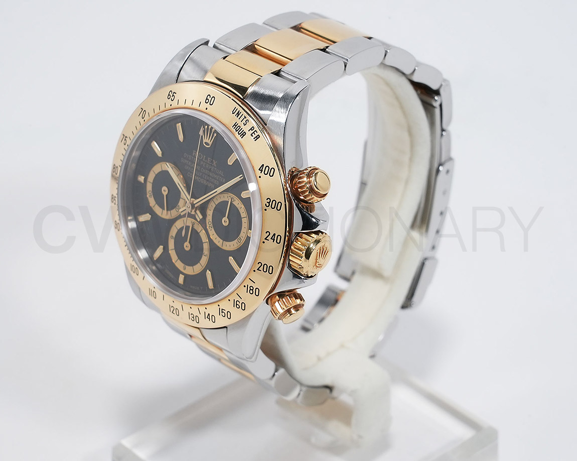 ドライヴィングとスピードに情熱を捧げる人々の究極の実用時計「コスモグラフ デイトナ」は、プロのカーレーサーのニーズに応えるよう設計され、1963年に誕生しました。誕生から50年経った今でもスポーツクロノグラフにおける比類なき存在として君臨し、時間を超越し続けています。こちらはステンレスとイエローゴールドのコンビモデル。