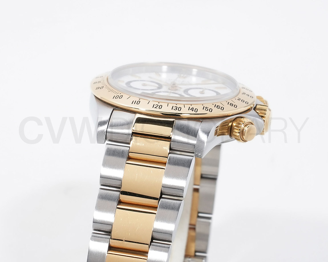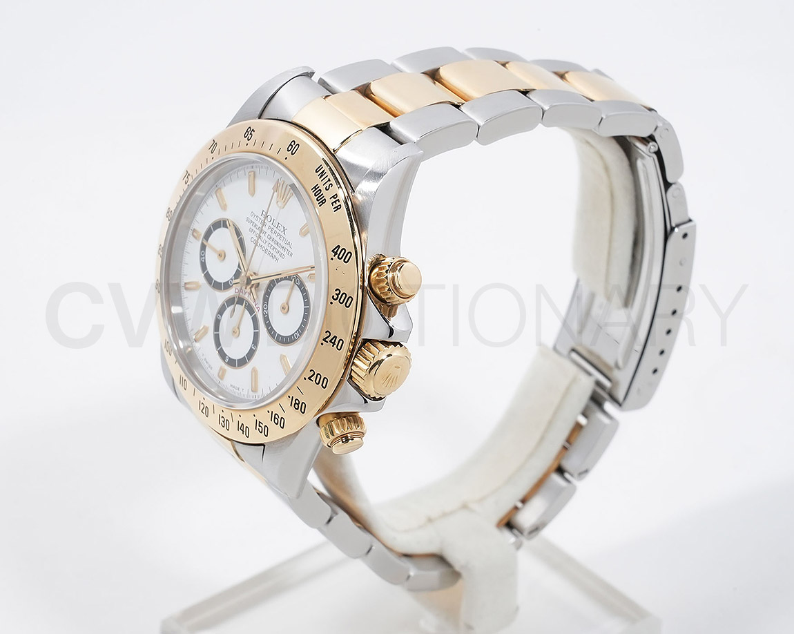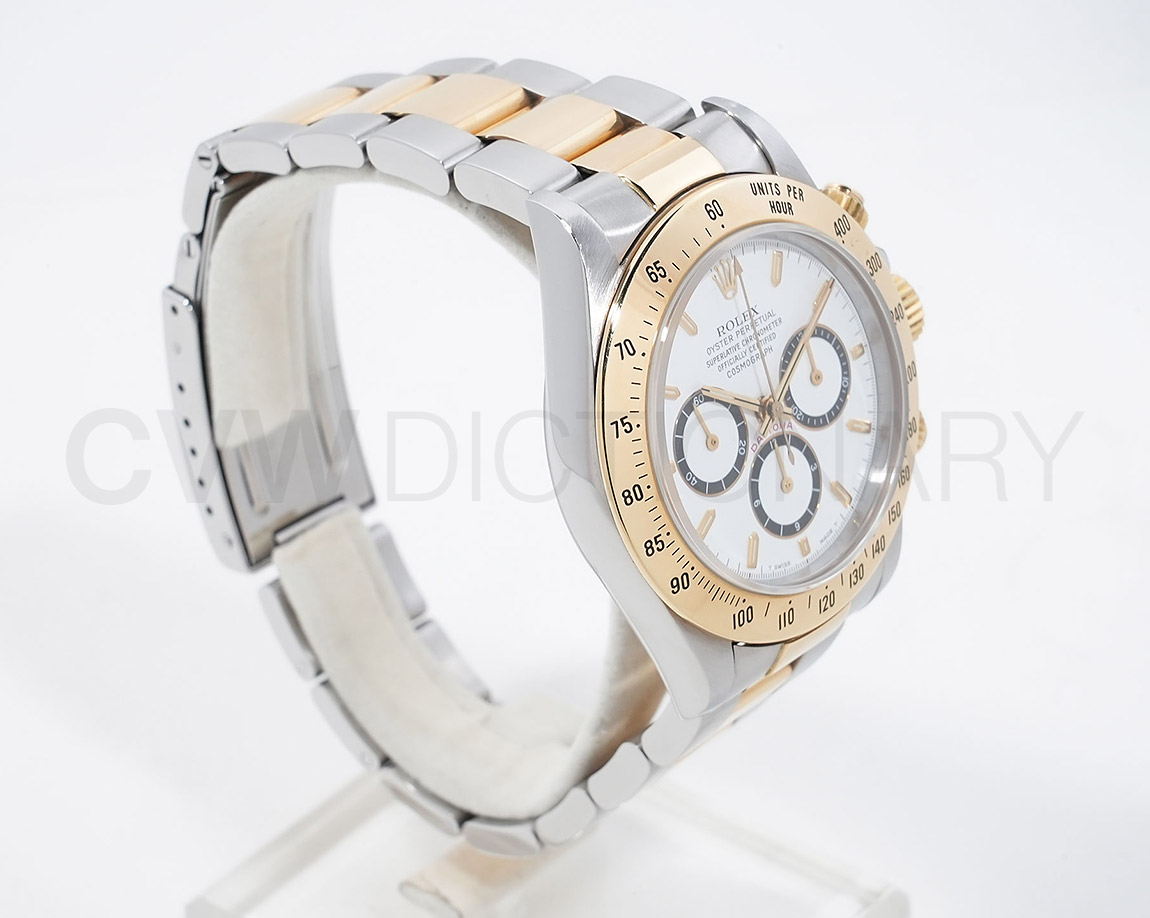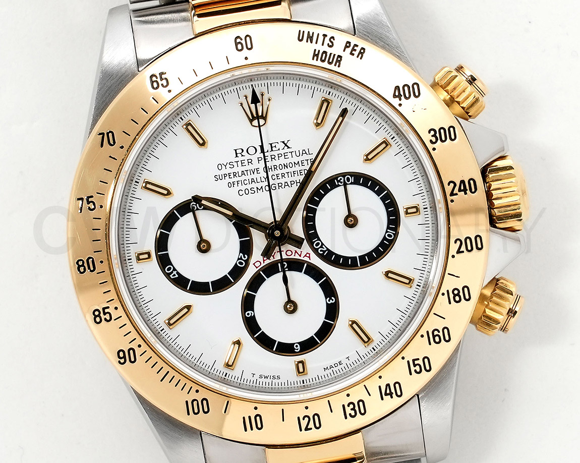 ドライヴィングとスピードに情熱を捧げる人々の究極の実用時計「コスモグラフ デイトナ」は、プロのカーレーサーのニーズに応えるよう設計され、1963年に誕生しました。誕生から50年経った今でもスポーツクロノグラフにおける比類なき存在として君臨し、時間を超越し続けています。こちらはステンレスとイエローゴールドのコンビモデル。