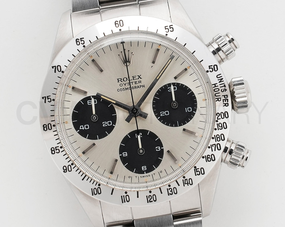 ロレックスで一番と言っても過言ではない人気モデル「デイトナ」年々、国内外で価格が高騰している手巻デイトナです。ステンレスベゼル仕様の「Ref.6265」は見た目がスッキリしていてツウ好みなデザインが、オススメです。