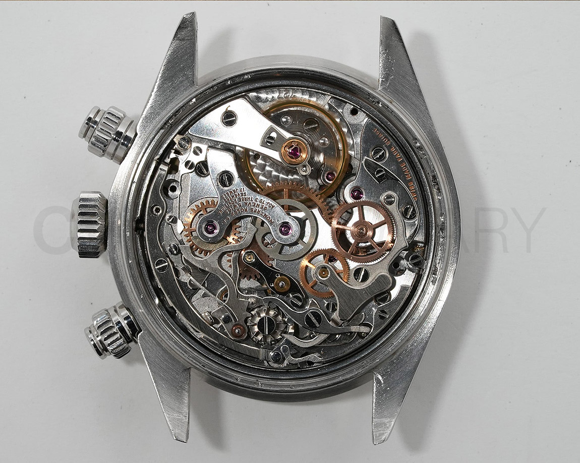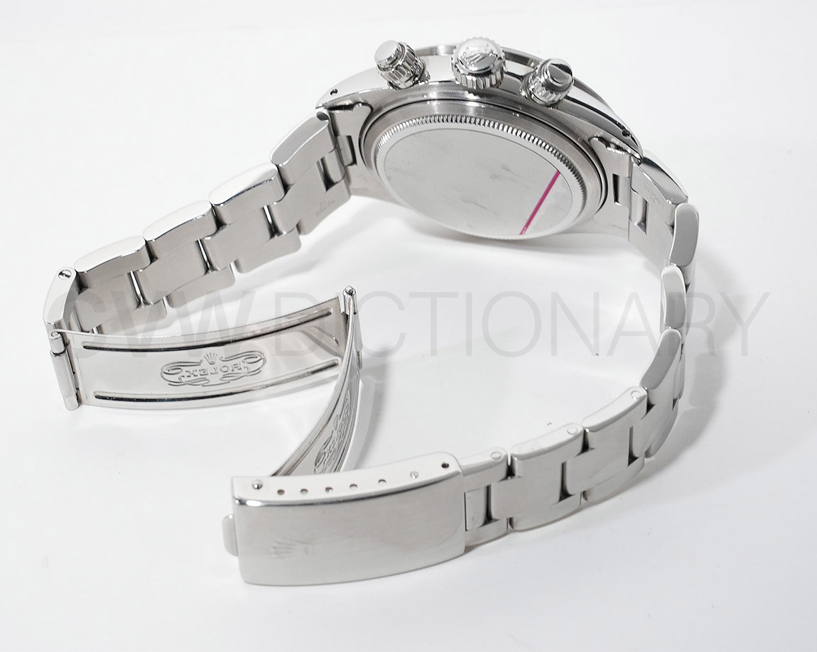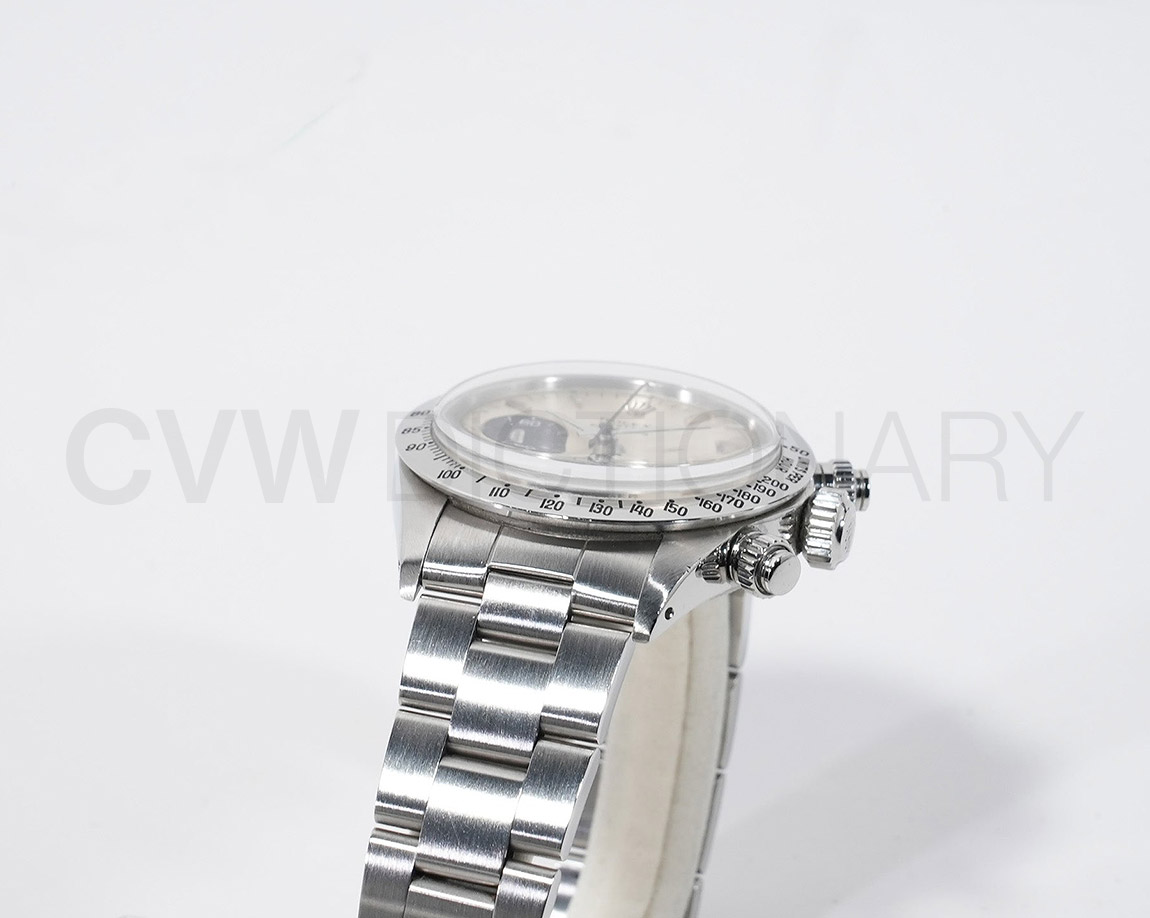 使用によるスレ、小キズがございますが、ケースはエッジがしっかり立った良個体です。後年ブレスにはなりますがブレスコンディションも良好です。シグマダイヤルは僅かな小キズ、夜光欠落箇所がございますが綺麗な状態を維持しております。プッシャーは後年に交換されておりますが、価格が魅力的なオススメ手巻きデイトナになりますのでお探しの方は是非ご検討下さい。