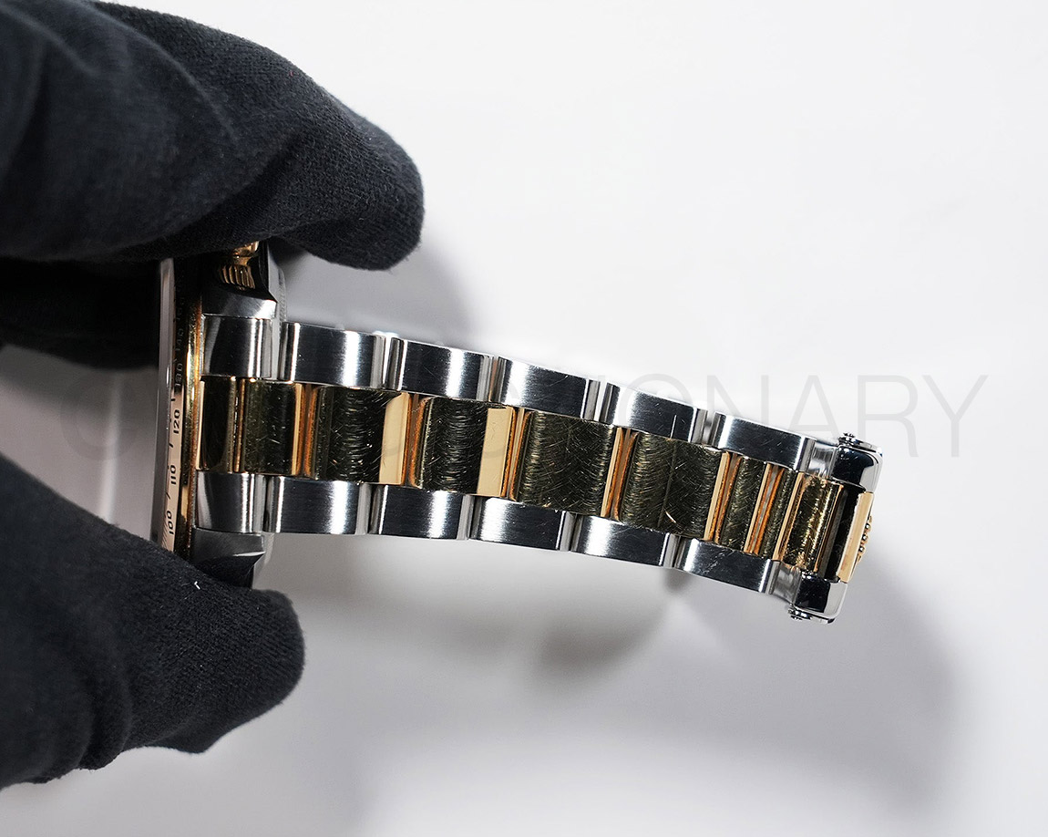 ドライヴィングとスピードに情熱を捧げる人々の究極の実用時計「コスモグラフ デイトナ」は、プロのカーレーサーのニーズに応えるよう設計され、1963年に誕生しました。誕生から50年経った今でもスポーツクロノグラフにおける比類なき存在として君臨し、時間を超越し続けています。こちらはステンレスとイエローゴールドのコンビモデル。