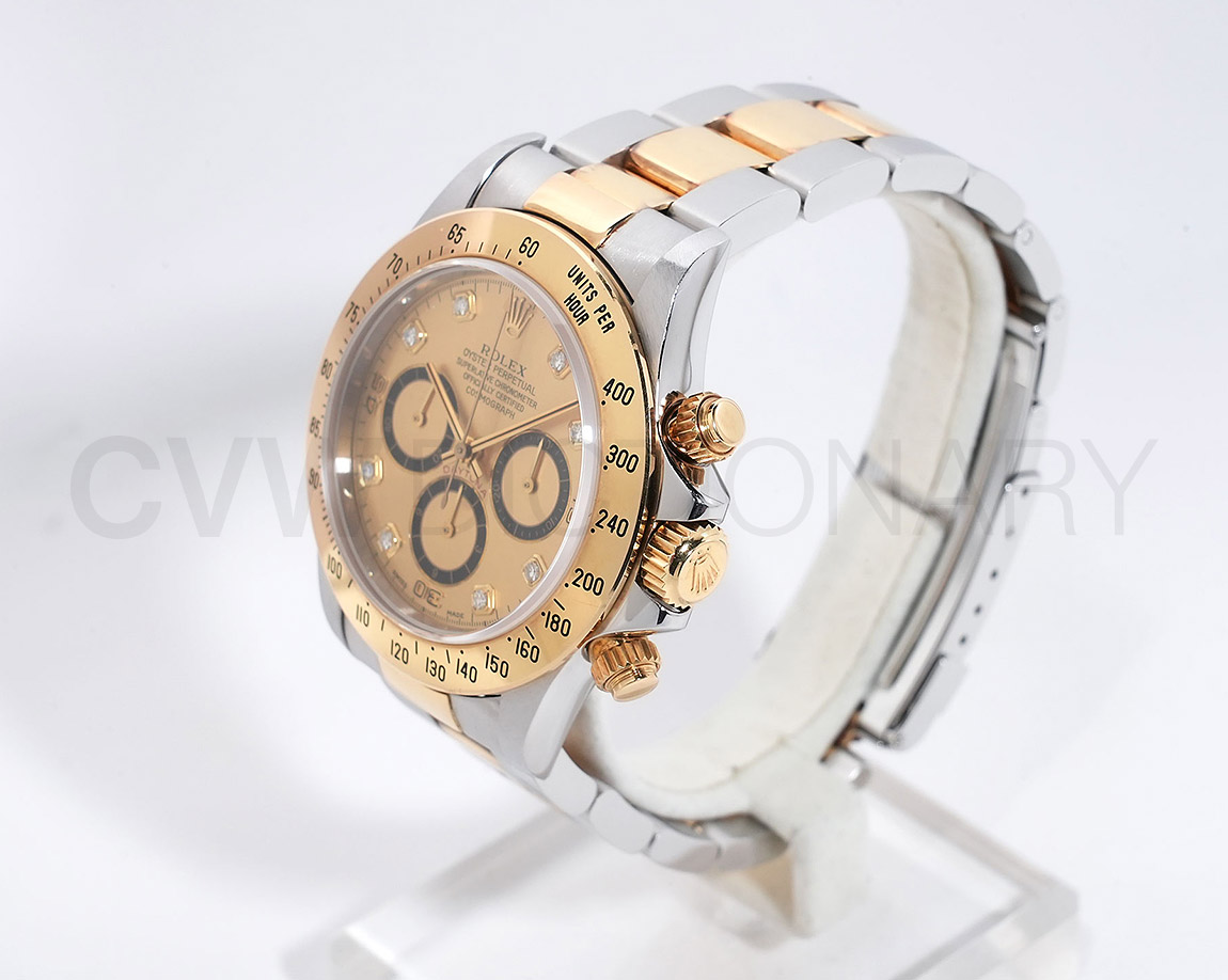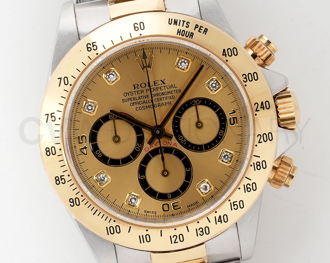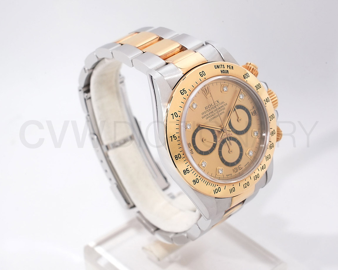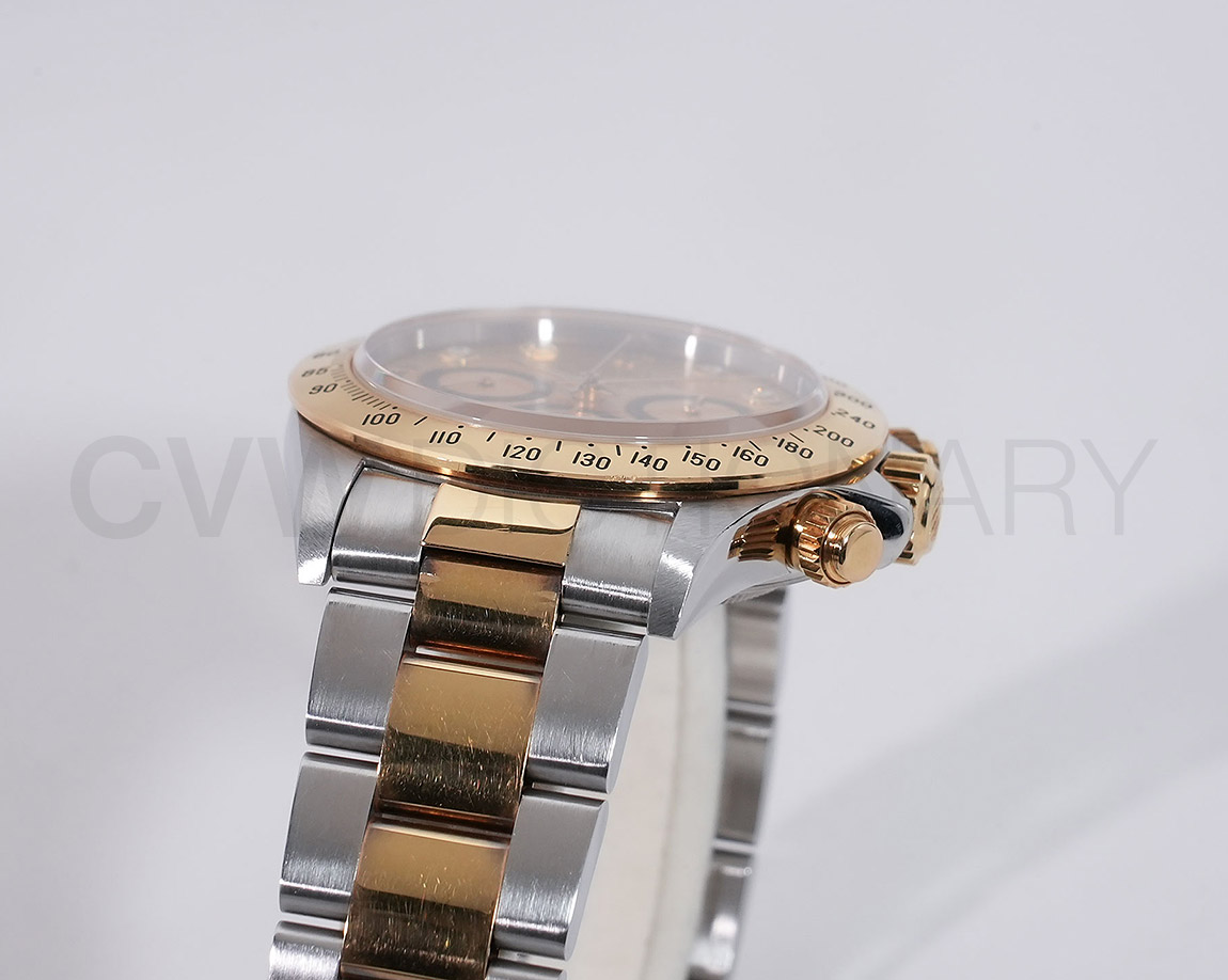 ドライヴィングとスピードに情熱を捧げる人々の究極の実用時計「コスモグラフ デイトナ」は、プロのカーレーサーのニーズに応えるよう設計され、1963年に誕生しました。誕生から50年経った今でもスポーツクロノグラフにおける比類なき存在として君臨し、時間を超越し続けています。こちらはステンレスとイエローゴールドのコンビモデル。