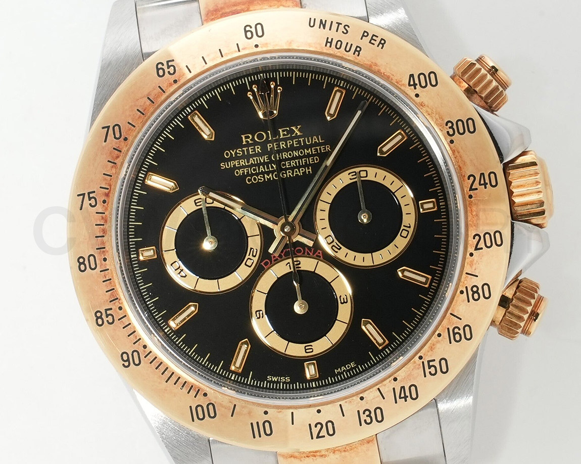 ケース交換はされていますが、交換後に外装仕上げを行っていないと思われ、ケースやベゼルはエッジがしっかりと立っている優良個体です。