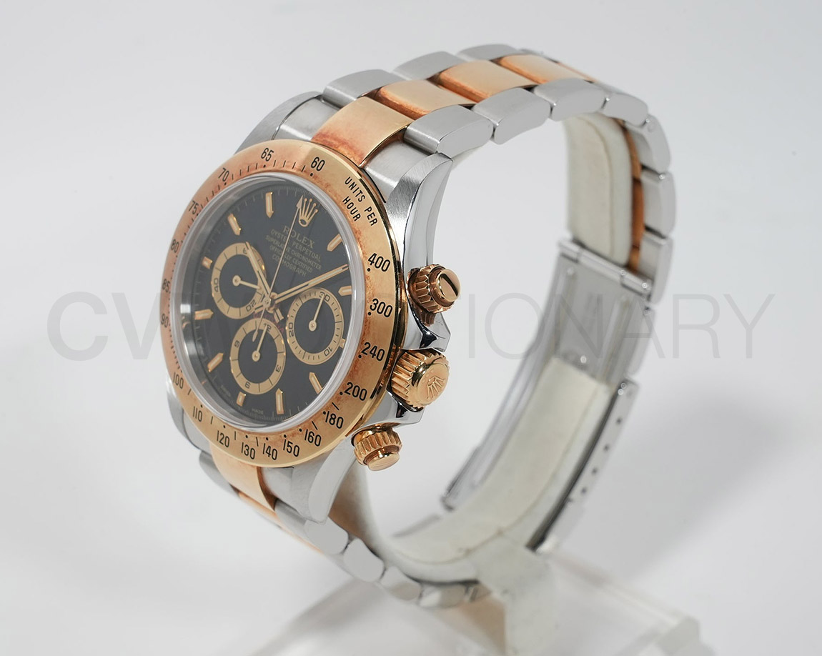ドライヴィングとスピードに情熱を捧げる人々の究極の実用時計「コスモグラフ デイトナ」は、プロのカーレーサーのニーズに応えるよう設計され、1963年に誕生しました。誕生から50年経った今でもスポーツクロノグラフにおける比類なき存在として君臨し、時間を超越し続けています。こちらはステンレスとイエローゴールドのコンビモデル。