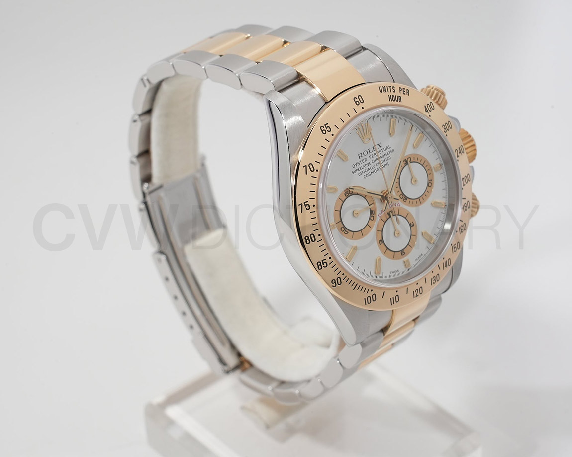 ドライヴィングとスピードに情熱を捧げる人々の究極の実用時計「コスモグラフ デイトナ」は、プロのカーレーサーのニーズに応えるよう設計され、1963年に誕生しました。誕生から50年経った今でもスポーツクロノグラフにおける比類なき存在として君臨し、時間を超越し続けています。こちらはステンレスとイエローゴールドのコンビモデル。