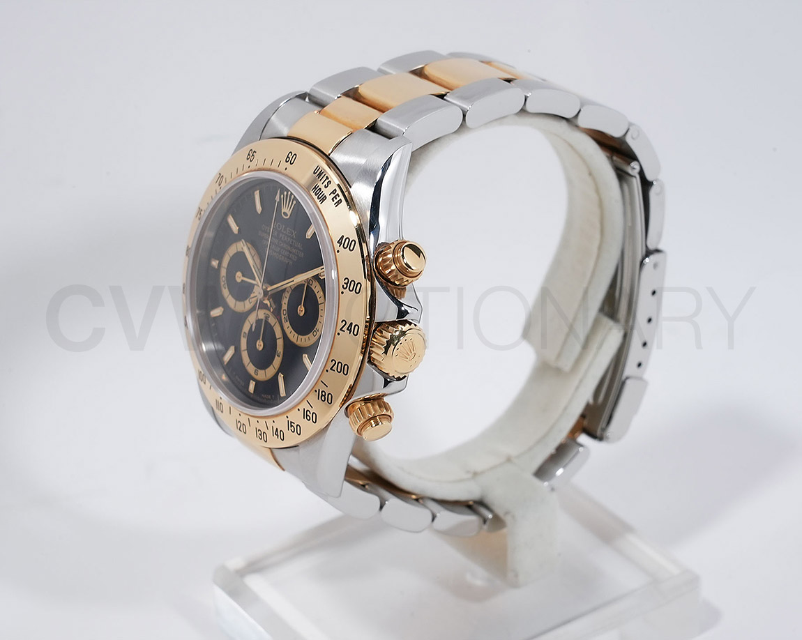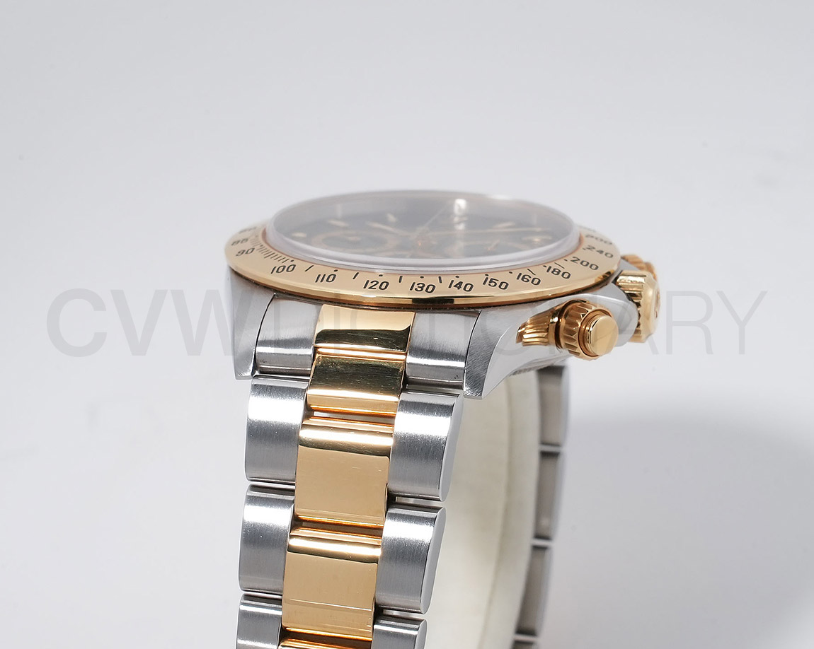 ドライヴィングとスピードに情熱を捧げる人々の究極の実用時計「コスモグラフ デイトナ」は、プロのカーレーサーのニーズに応えるよう設計され、1963年に誕生しました。誕生から50年経った今でもスポーツクロノグラフにおける比類なき存在として君臨し、時間を超越し続けています。こちらはステンレスとイエローゴールドのコンビモデル。