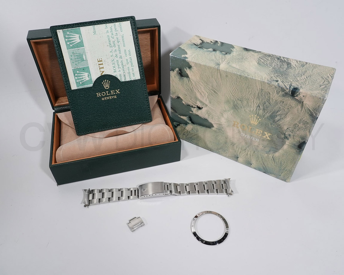 現在、交換用のプラスチックベゼルが付いておりますが、年代の合ったステンレスベゼルも付属しており、価格が魅力的なオススメ商品になります。弊社提携工房にて2025年11月にオーバーホール済みの商品になります。