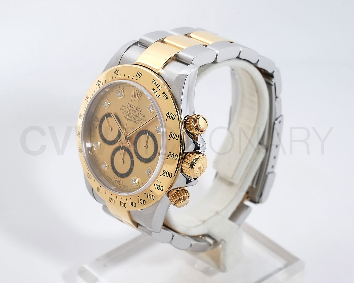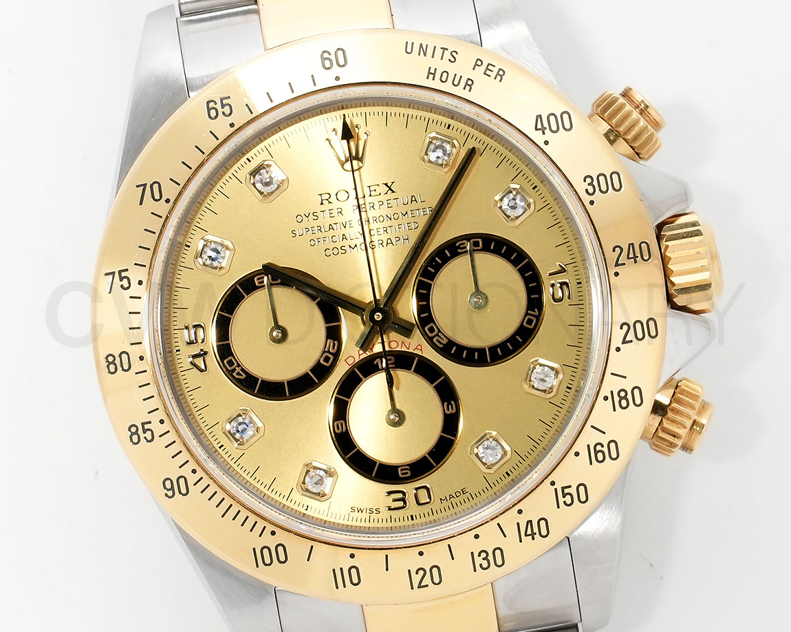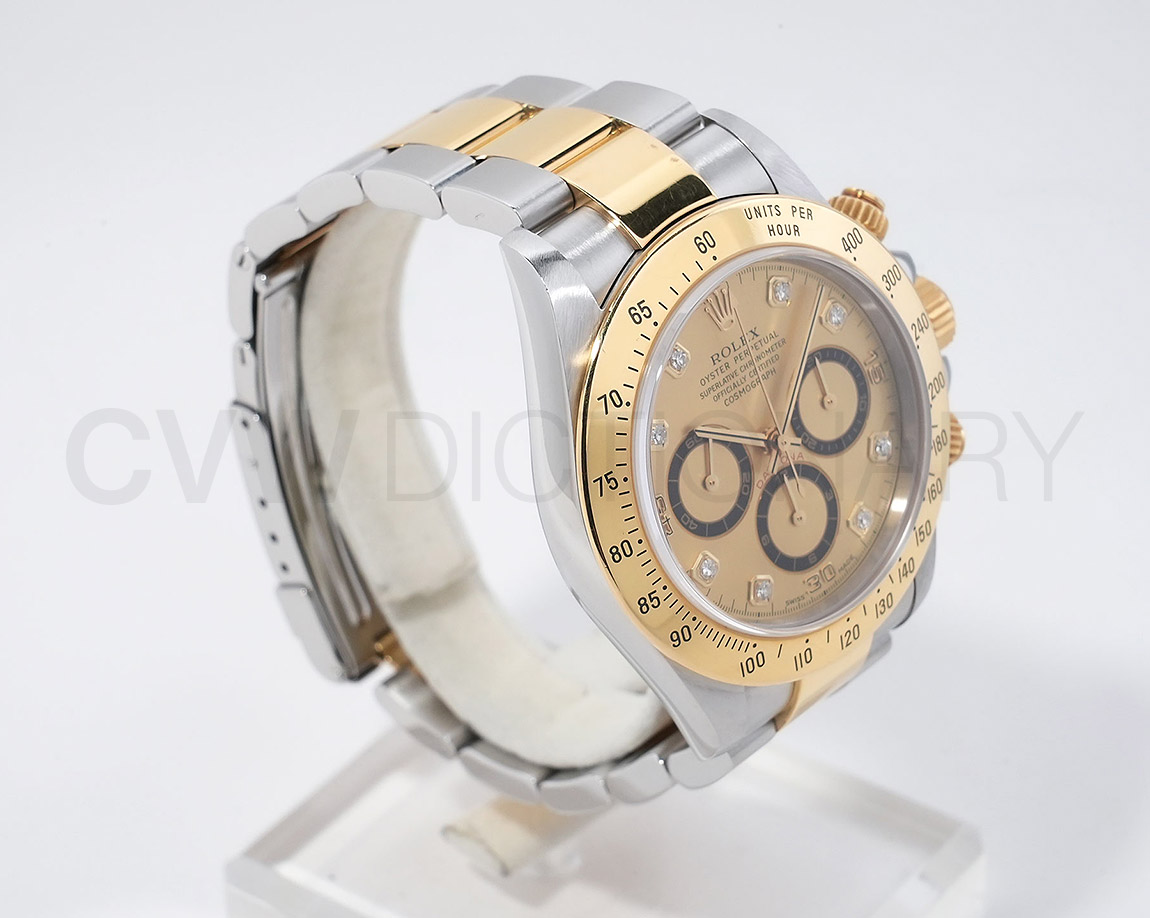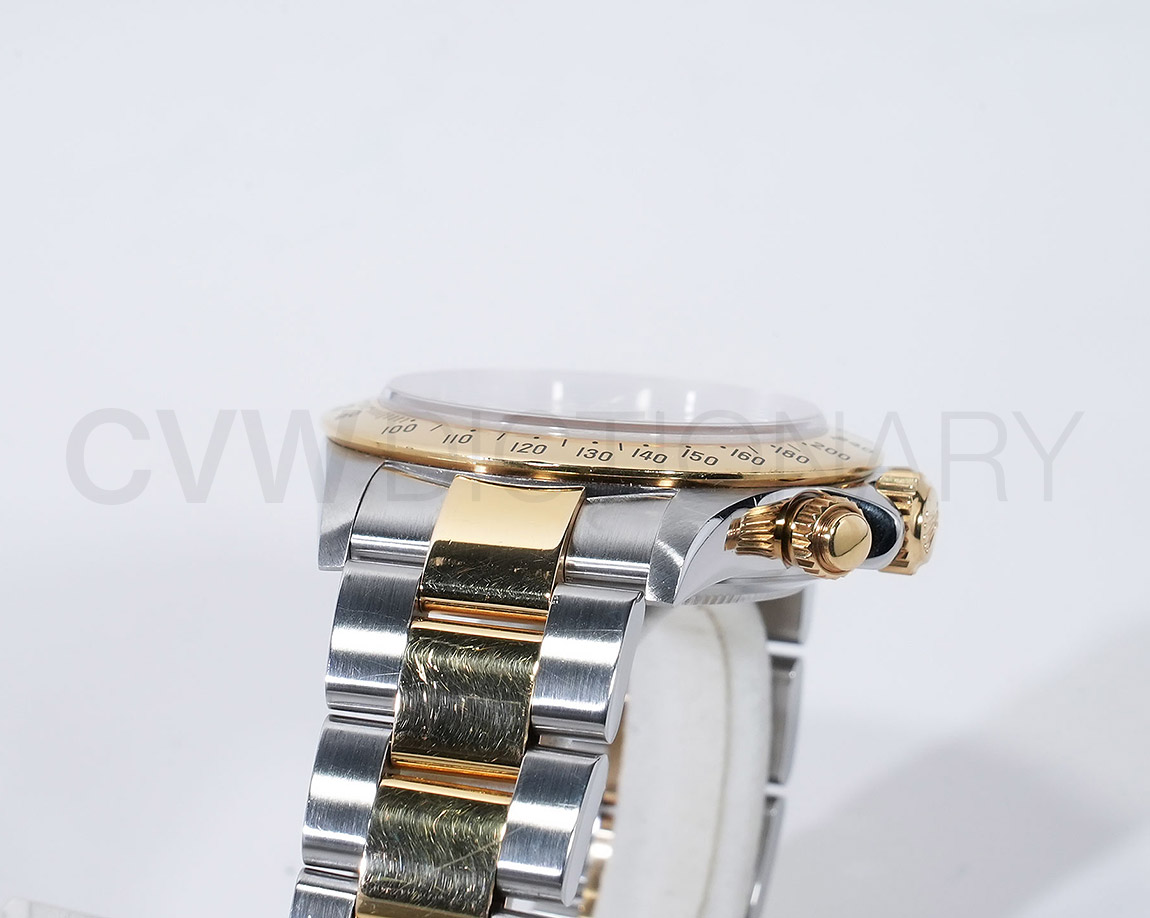 ドライヴィングとスピードに情熱を捧げる人々の究極の実用時計「コスモグラフ デイトナ」は、プロのカーレーサーのニーズに応えるよう設計され、1963年に誕生しました。誕生から50年経った今でもスポーツクロノグラフにおける比類なき存在として君臨し、時間を超越し続けています。こちらはステンレスとイエローゴールドのコンビモデル。