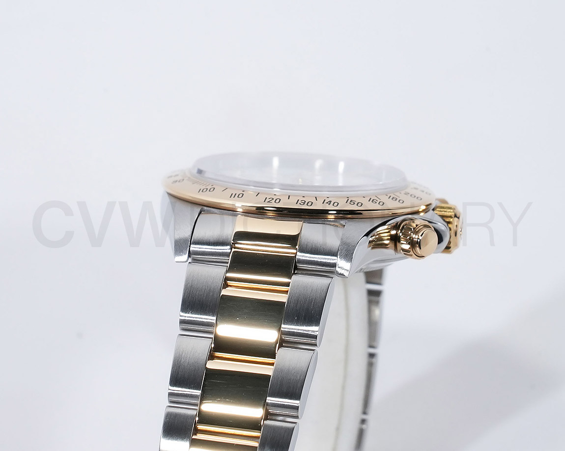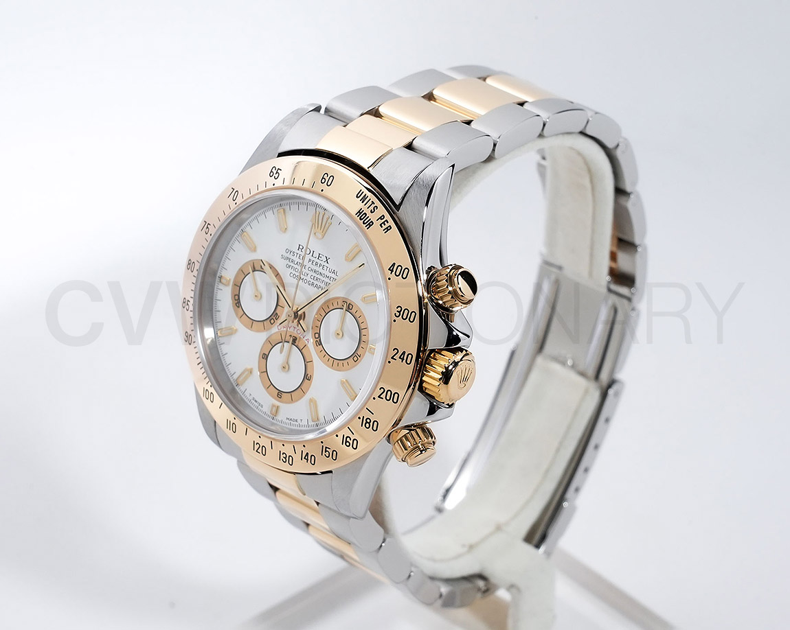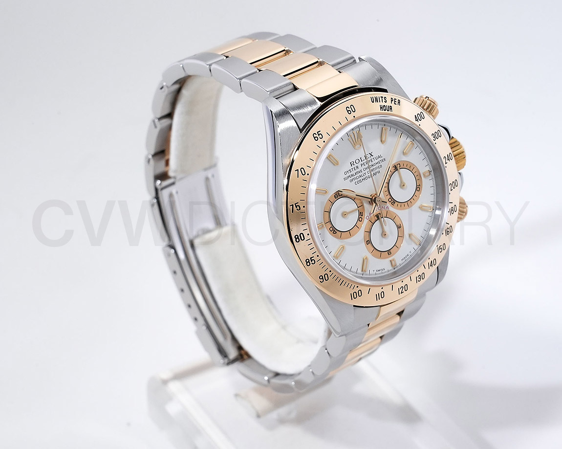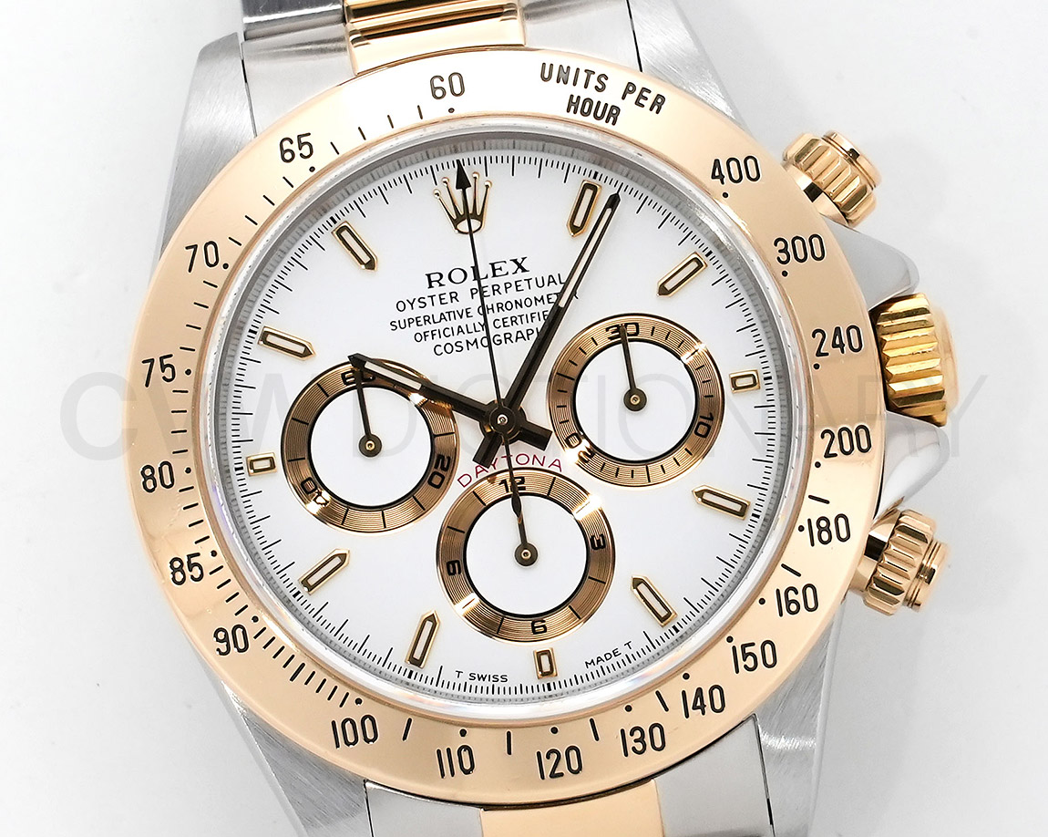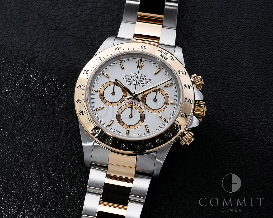 ドライヴィングとスピードに情熱を捧げる人々の究極の実用時計「コスモグラフ デイトナ」は、プロのカーレーサーのニーズに応えるよう設計され、1963年に誕生しました。誕生から50年経った今でもスポーツクロノグラフにおける比類なき存在として君臨し、時間を超越し続けています。こちらはステンレスとイエローゴールドのコンビモデル。
