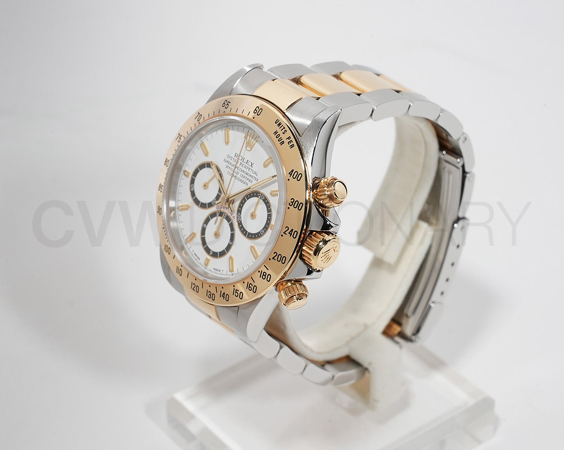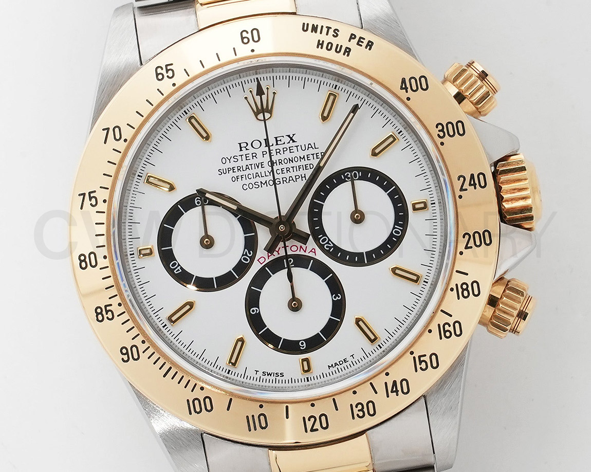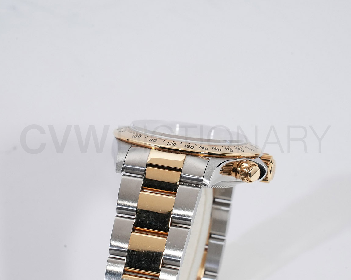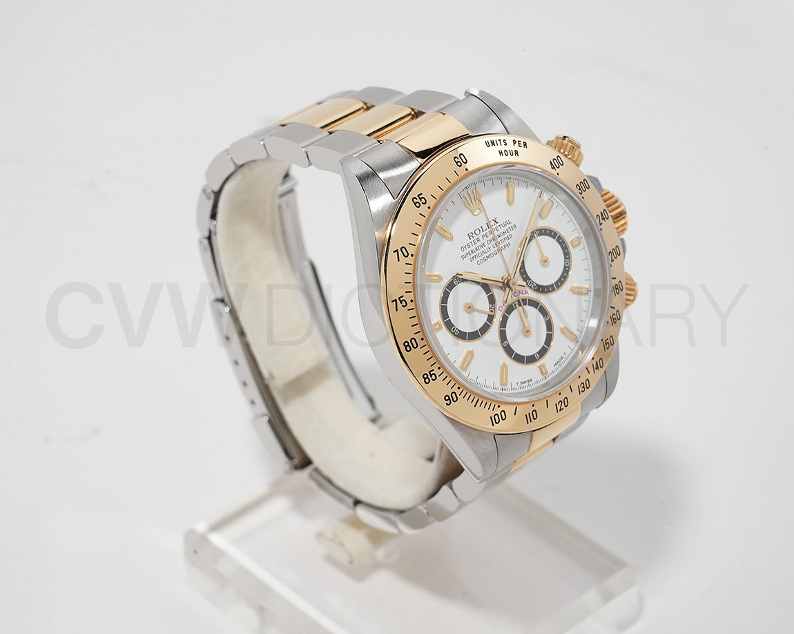 ドライヴィングとスピードに情熱を捧げる人々の究極の実用時計「コスモグラフ デイトナ」は、プロのカーレーサーのニーズに応えるよう設計され、1963年に誕生しました。誕生から50年経った今でもスポーツクロノグラフにおける比類なき存在として君臨し、時間を超越し続けています。こちらはステンレスとイエローゴールドのコンビモデル。