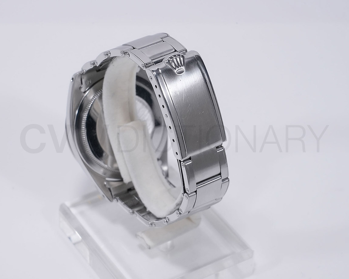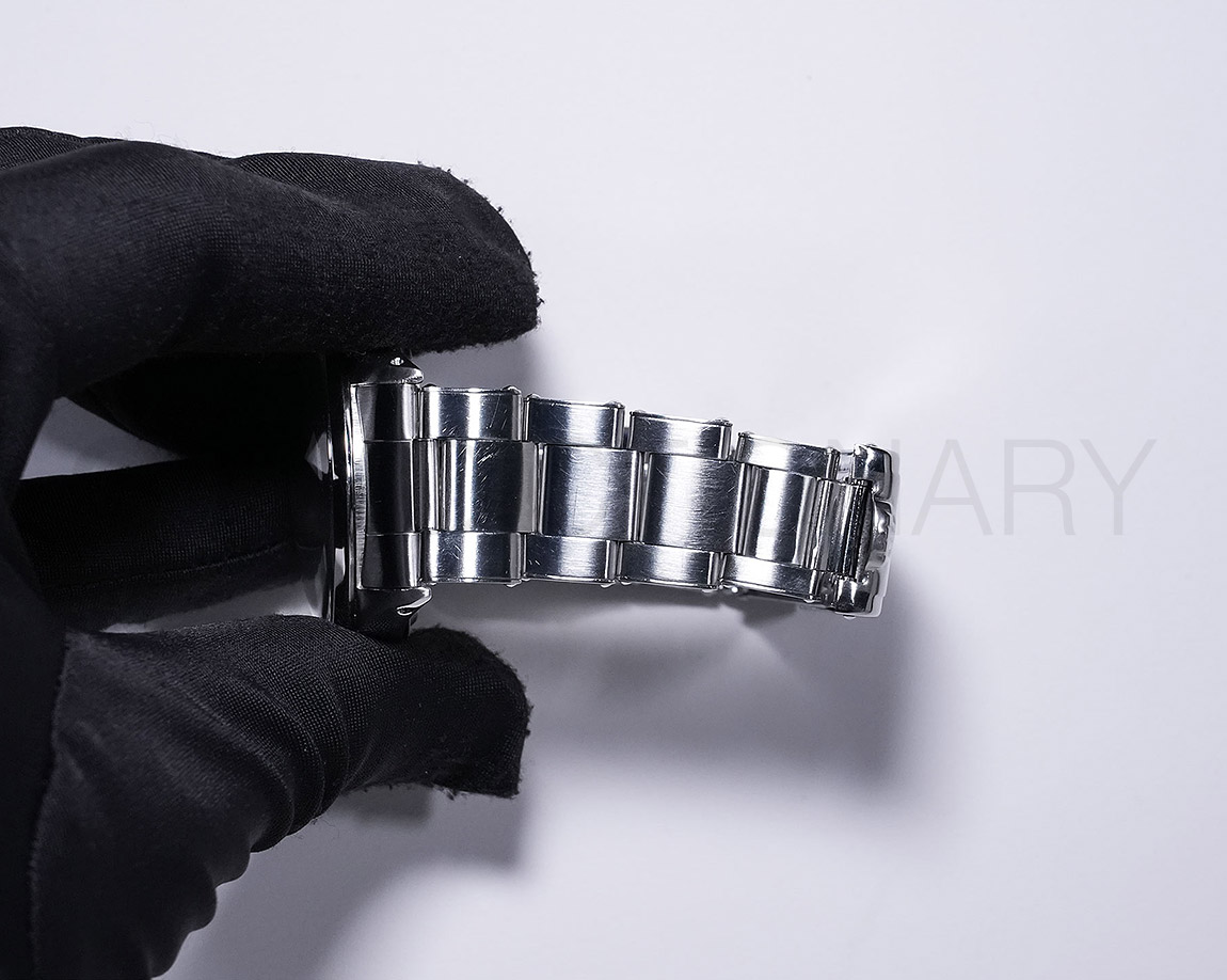 使用によるスレ、キズがございますが、大きなキズはなくコンディションは良好です。ダイヤルは3・6・9インデックスが1016の中でも最も太いメガファットルミナスになります。インデックス夜光は僅かな欠けが見られますが、キレイにクリーム変化しており雰囲気がある個体です。なかなかお目にかかれない希少モデルでダイヤル、リベットブレスのコンディションも良くオススメです。※針夜光は修正されております。※リベットブレスのコマ調整の際にお時間をいただきます。