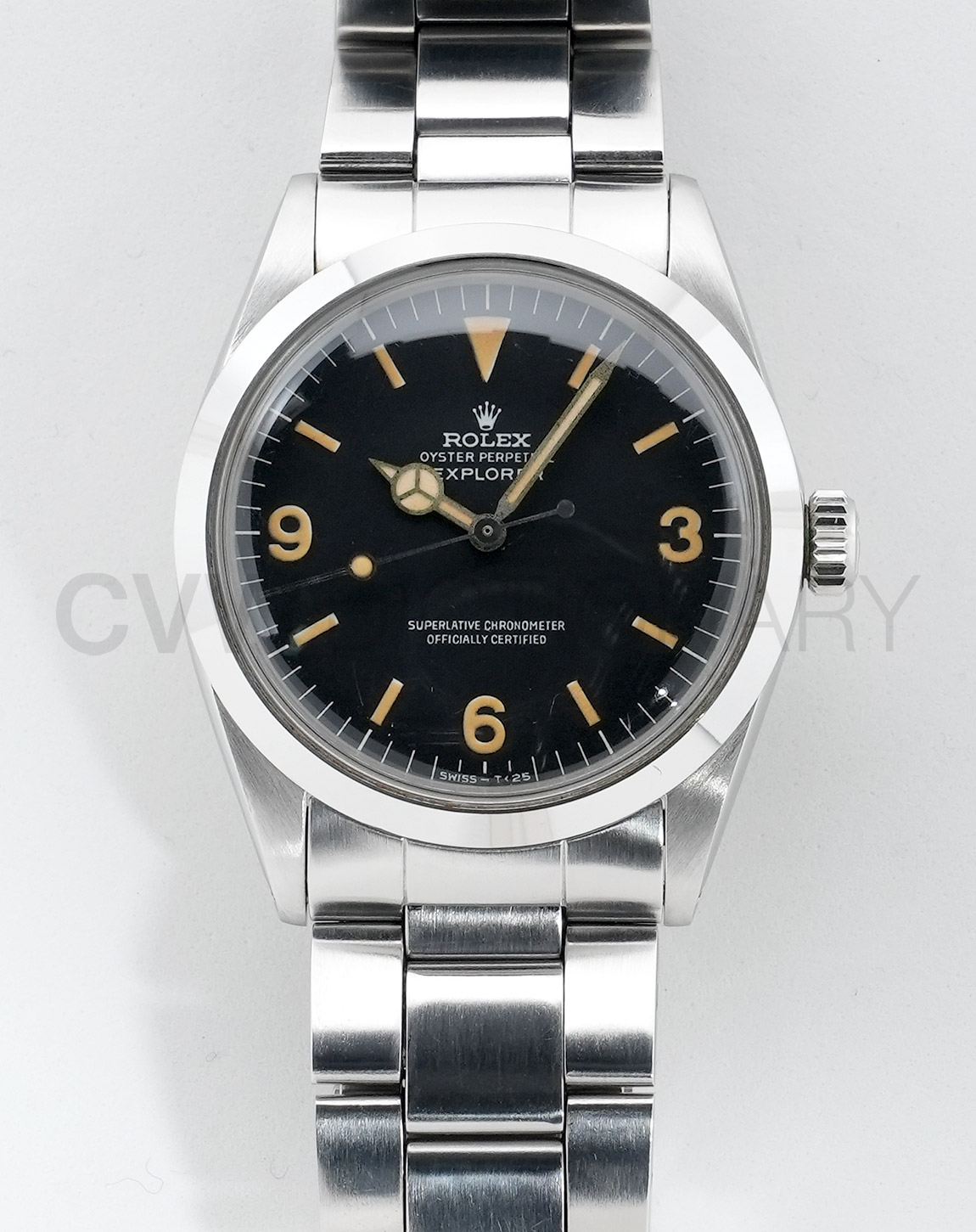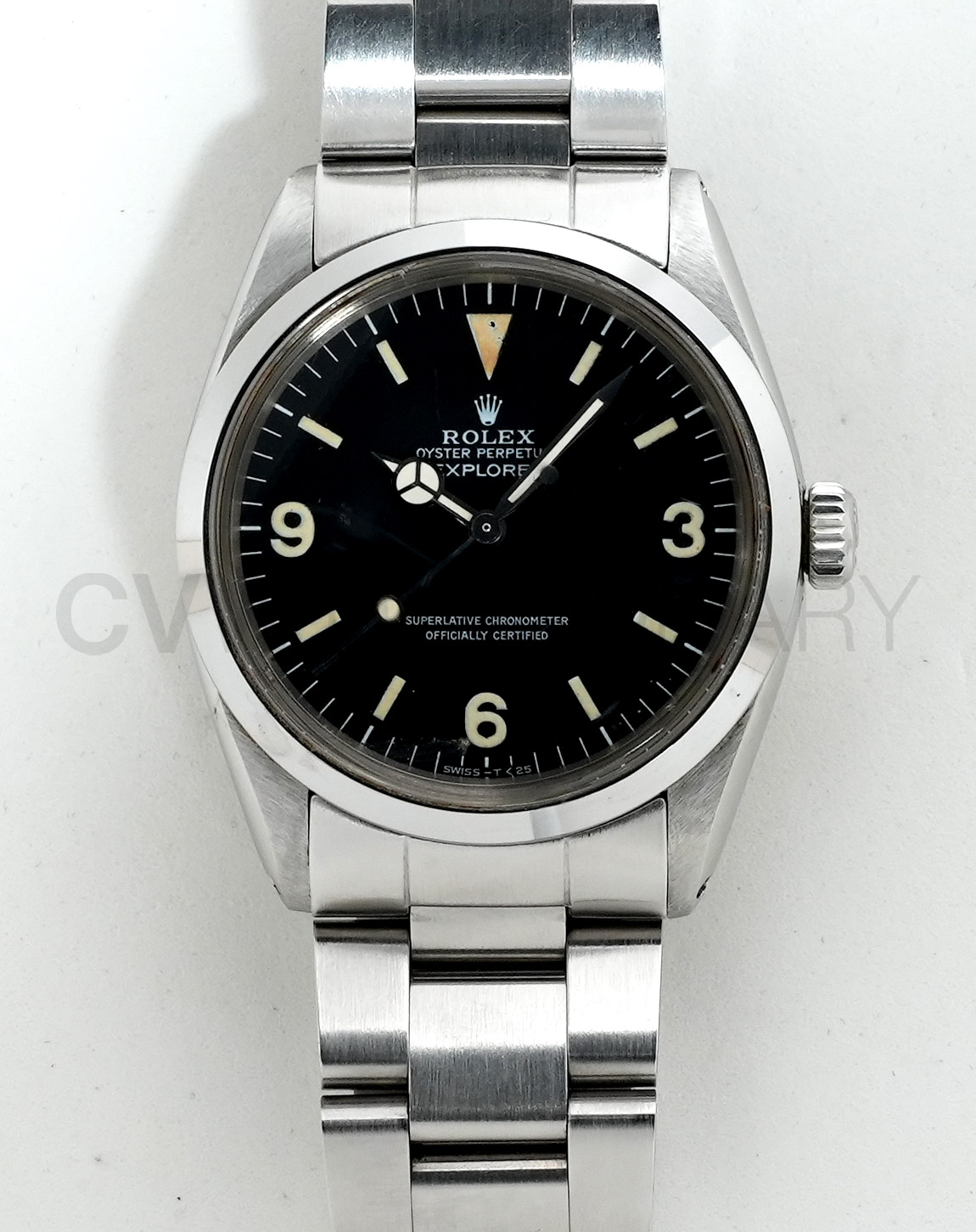 年代相応の使用キズがございますが、ケースはしっかりとしております。後年に交換されておりますが、希少性が高いフロッグフットダイヤルのコンディションは非常に良く、インデックス夜光は綺麗に焼けております。整合性はズレますが、日本ロレックスにてオーバーホールも完了しており価格が魅力的なオススメヴィンテージエクスプローラーです。
