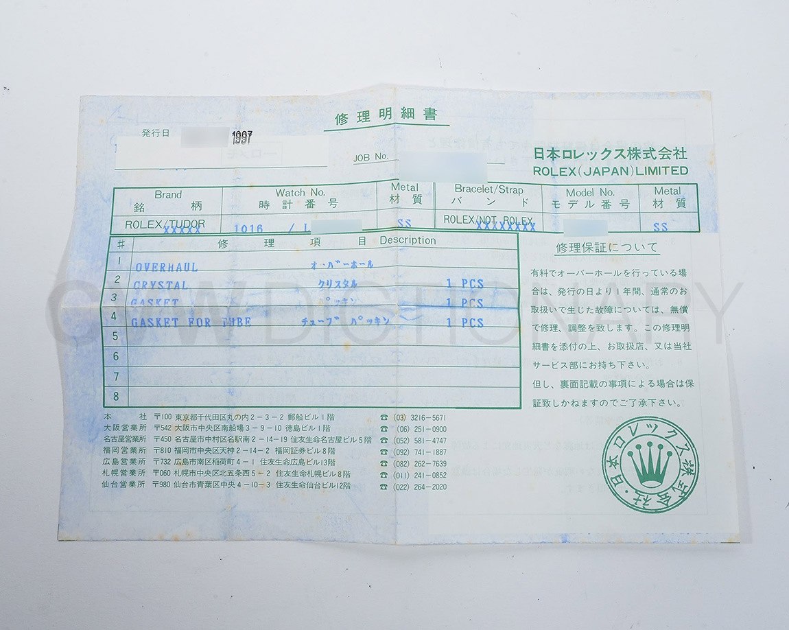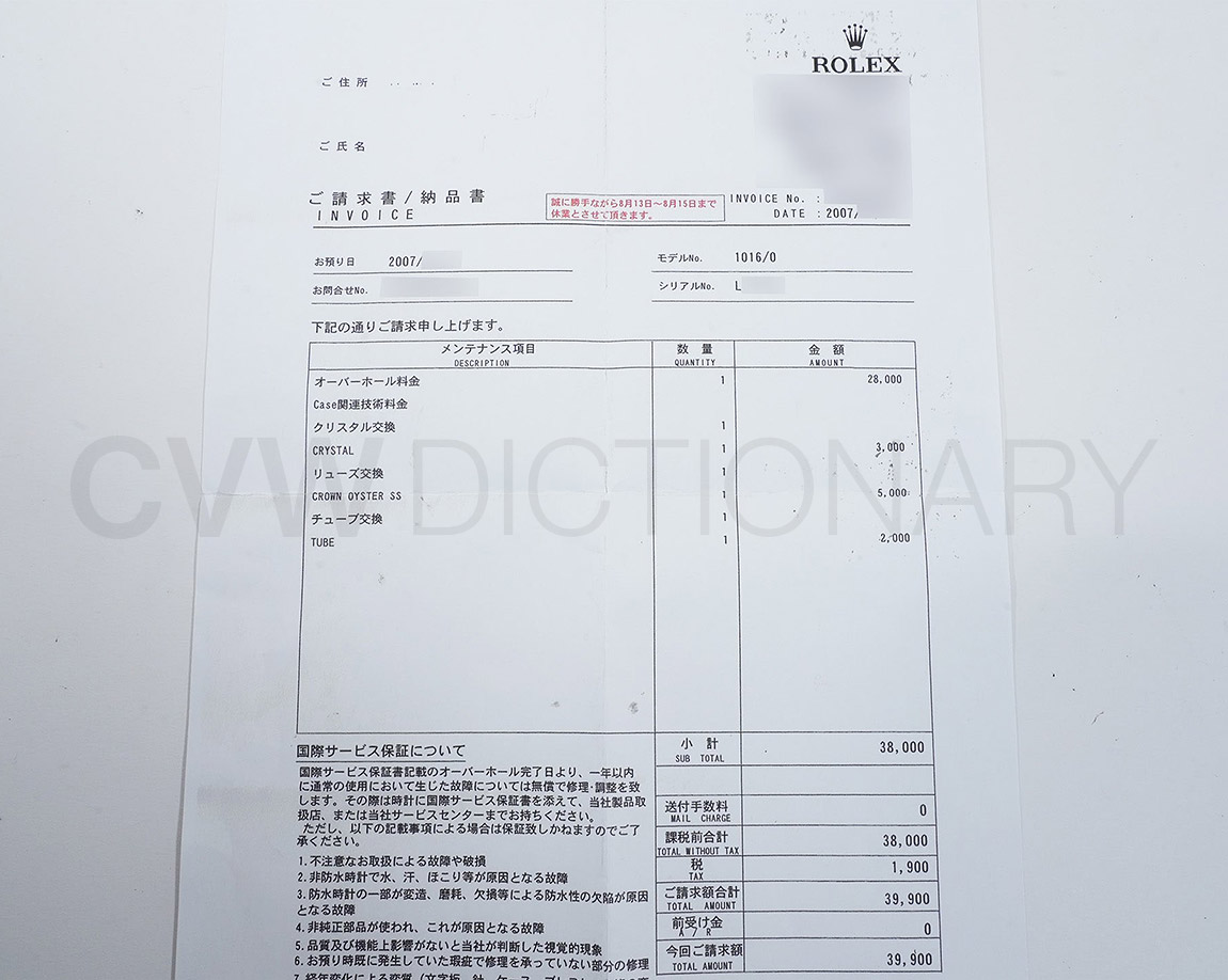 ケースは研磨で取り切れなかったキズが僅かに見られますが、その他は非常にキレイな状態でエッジがしっかり立った優良個体です。ブレスレットはやや後年のものになりますが、目立つキズや伸びが無く良好なコンディションです。文字盤はルーペで確認できる劣化が多少見られますが、肉眼では気にならないレベルとなっております。トータルコンディションに優れ、付属品も充実したオススメのL番1016ですので是非ご検討ください。弊社提携工房にてオーバーホール済みの商品になります。
