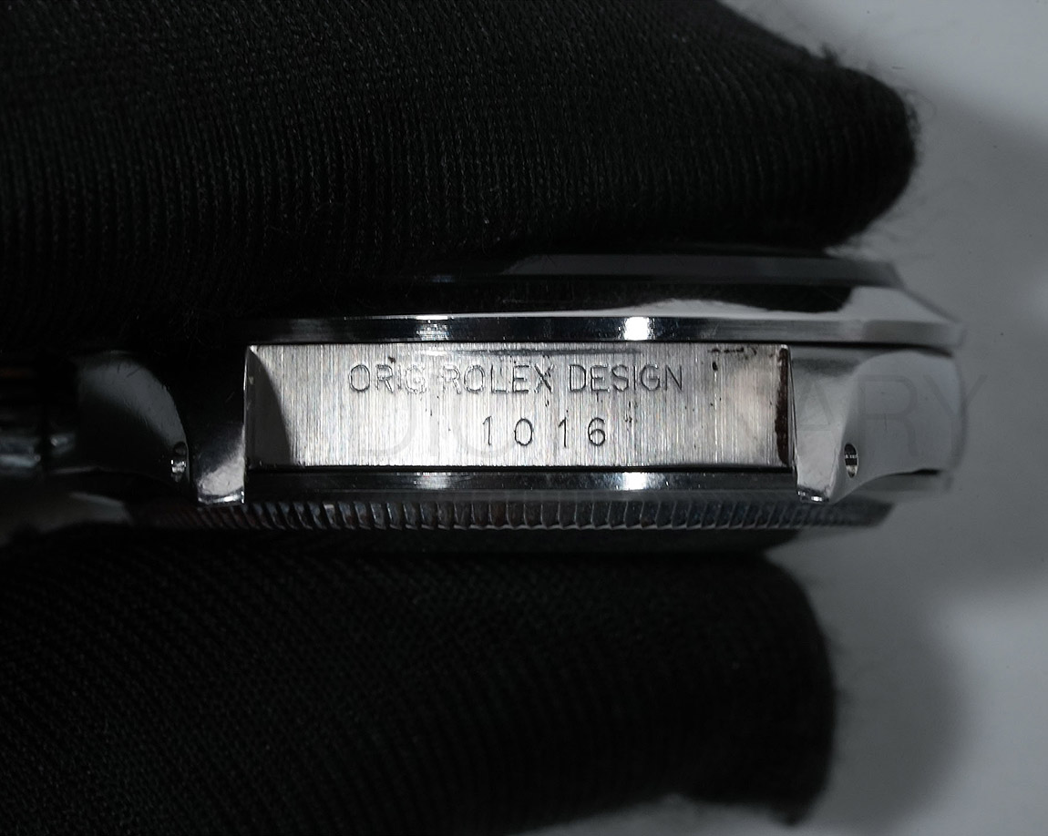 年代相応のスレやキズはございますが、ケースはしっかりとした印象の良い個体です。トリチウムの文字盤と針はほんのりとヤケが見られ、ヴィンテージらしい雰囲気を醸し出しております。高年式の「Ref.1016」をお探しの方には特にオススメの1本です。