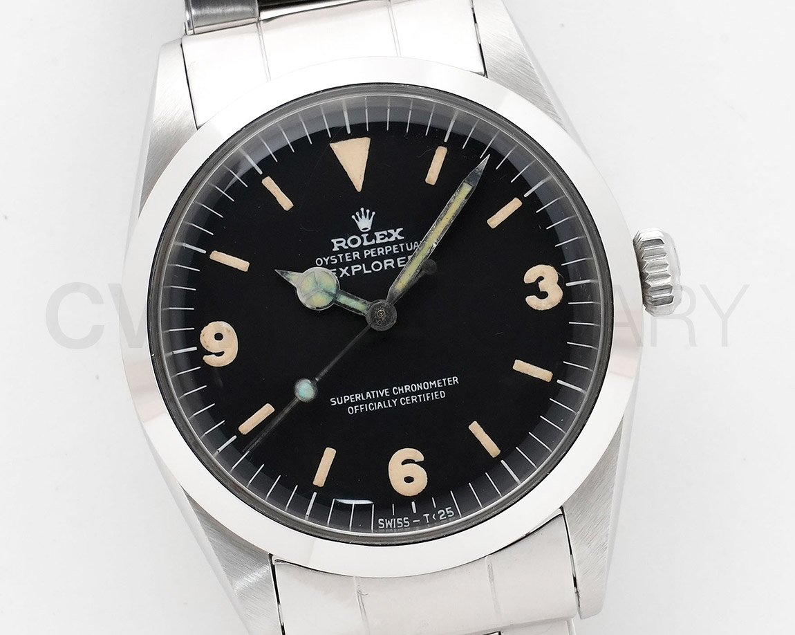 使用によるスレ、キズがございますが、ケースがしっかりとしている印象の良い個体です。ダイヤルは3・6・9インデックスが1016の中でも太いメガファットルミナスで比較的キレイな状態を維持しております。入荷が少ない希少ダイヤルで、年代の合ったリベットブレスが装備された雰囲気がある個体になりますのでお探しの方は是非ご検討下さい。弊社提携工房にてオーバーホール済みの商品になります。