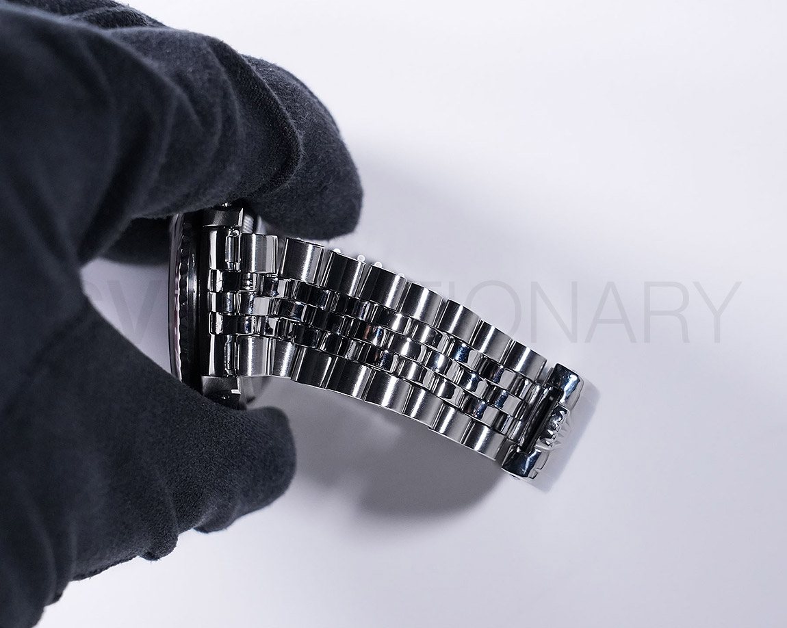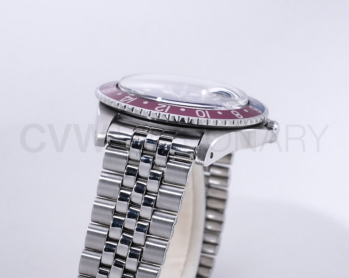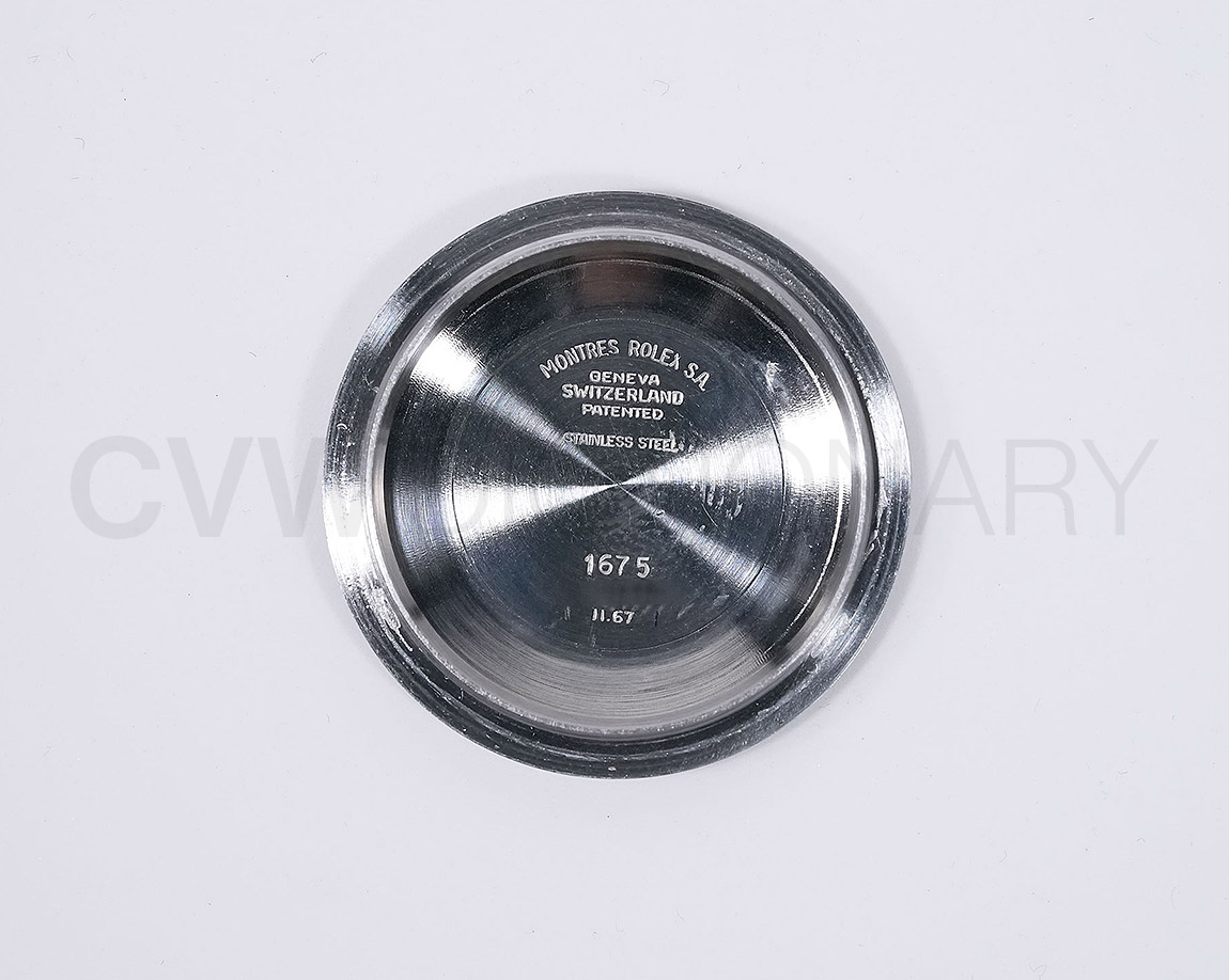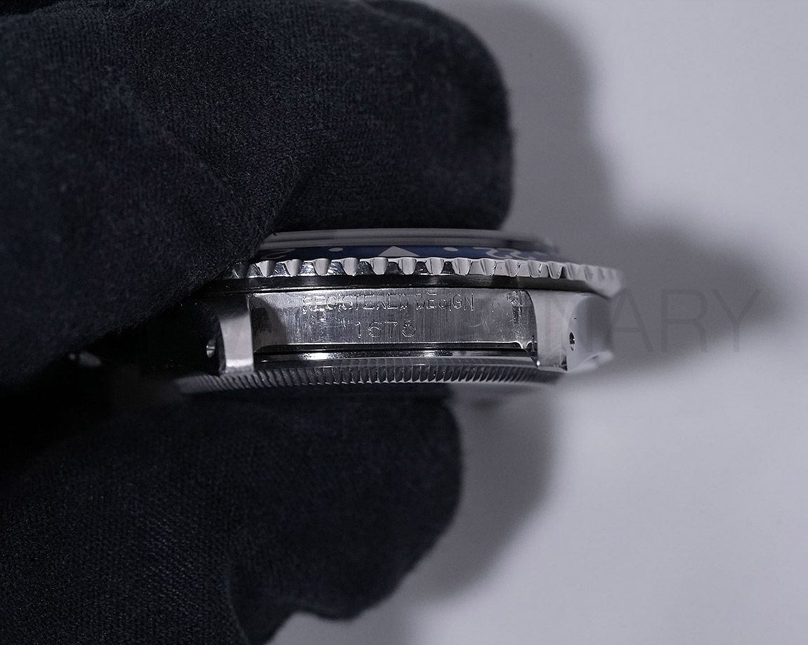 1960年から1980年頃まで製造されたロングセラーモデルのGMTマスター「Ref.1675」。フチなしのインデックスにプラスチック風防を備え、アンティークの雰囲気を存分に楽しむことができるモデルです。