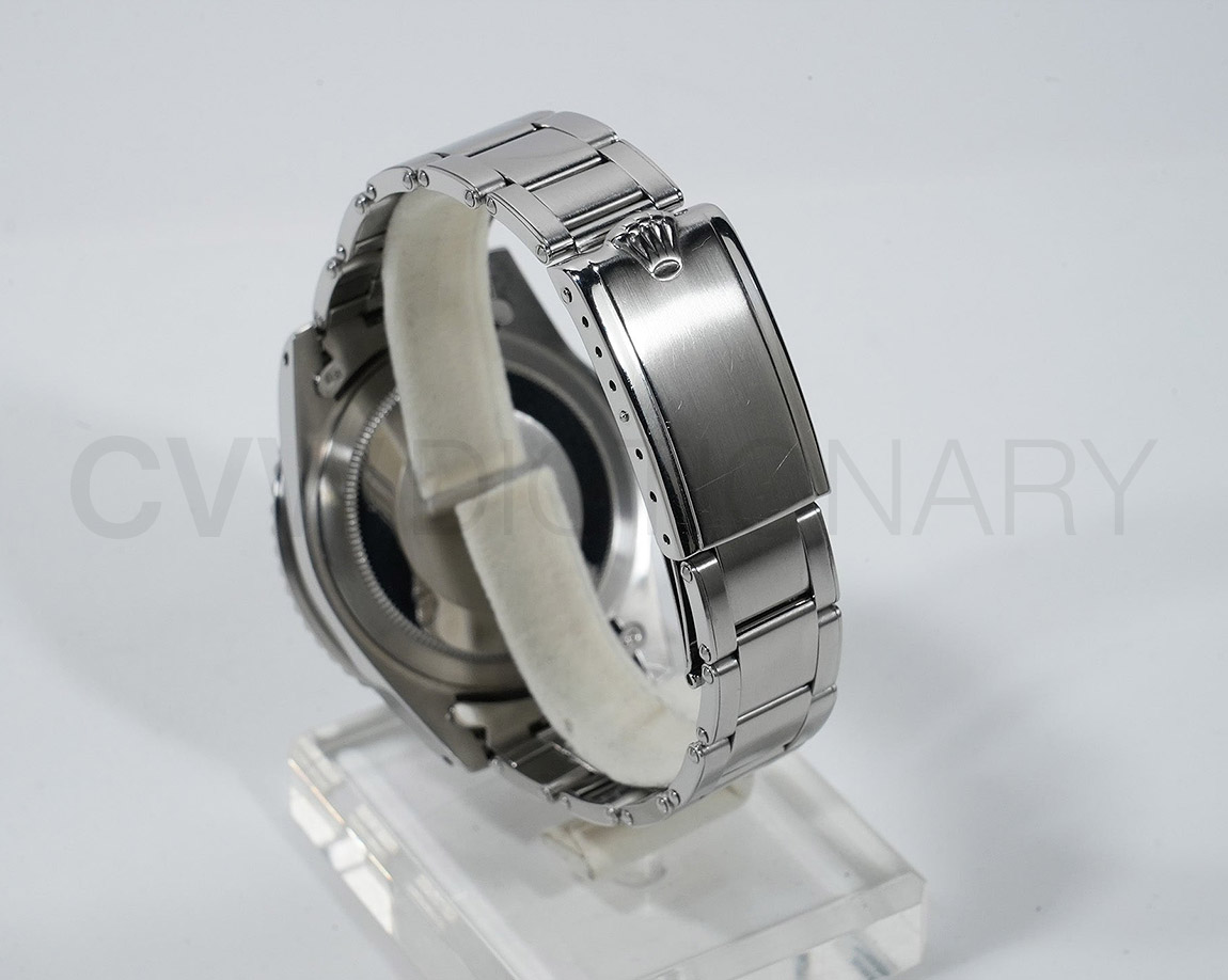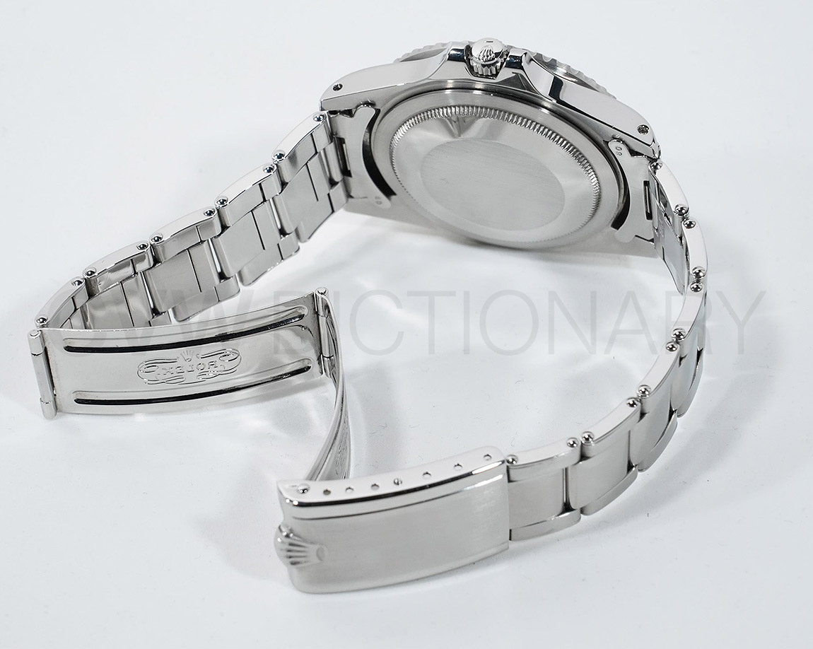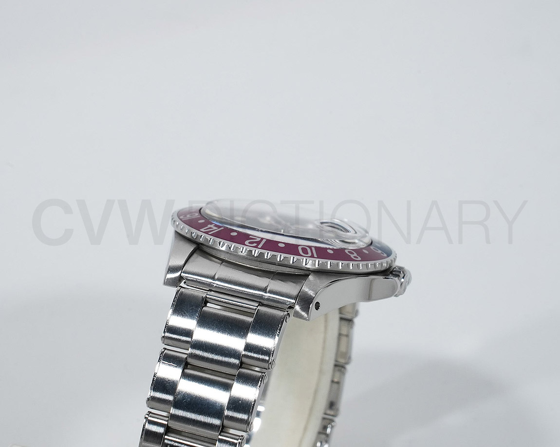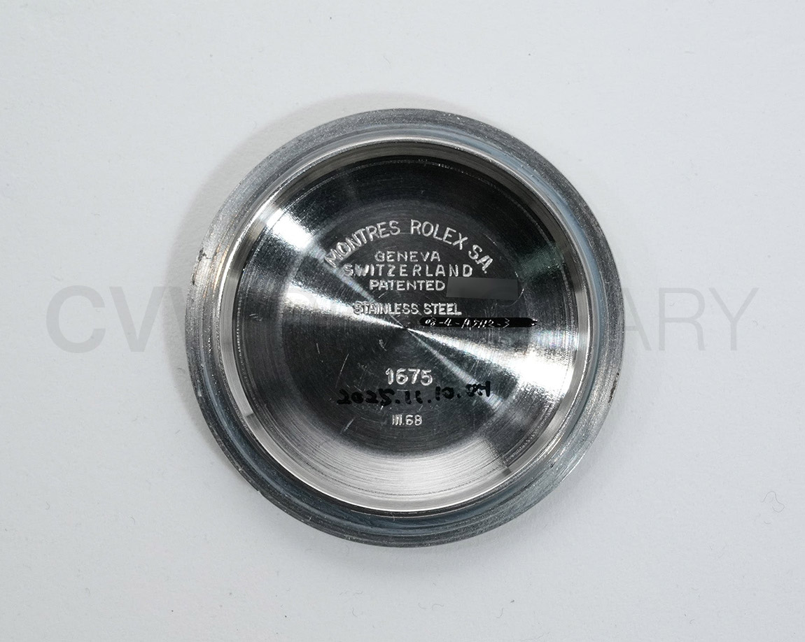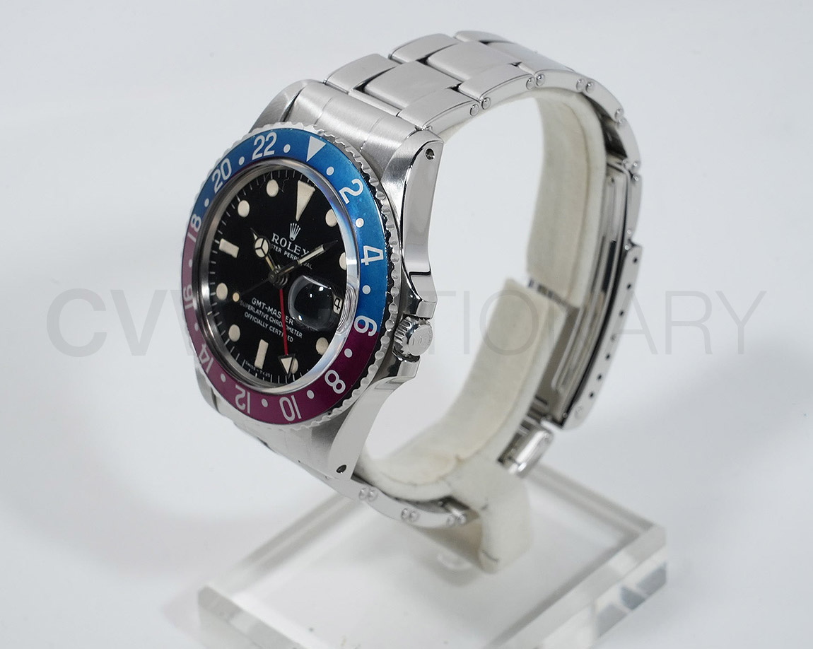 1960年から1980年頃まで製造されたロングセラーモデルのGMTマスター「Ref.1675」。フチなしのインデックスにプラスチック風防を備え、アンティークの雰囲気を存分に楽しむことができるモデルです。