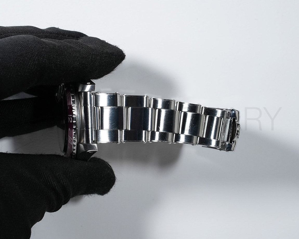 使用によるスレ、小キズがございますが、ケースは太くしっかりとしており、リベットブレスのコンディションも抜群に良い状態を維持しております。年代の合ったダイヤルも非常に良い状態で夜光はオールトリチウムになります。綺麗なフクシアインサートが魅力的でパーツの整合性も取れたオススメ個体です。