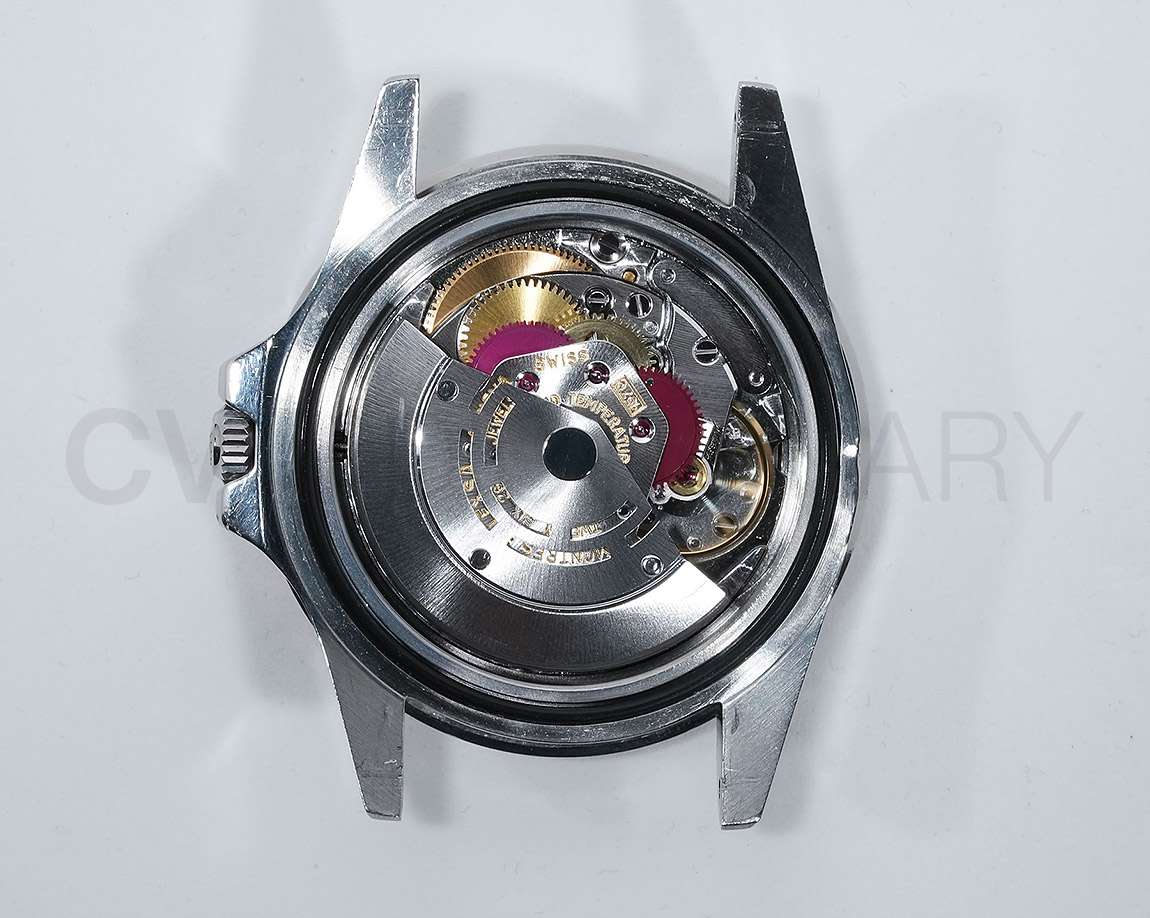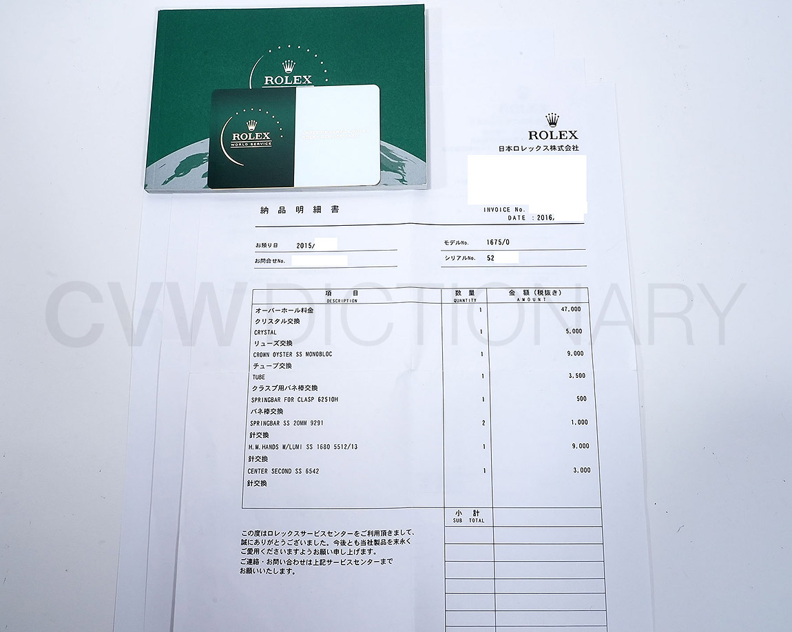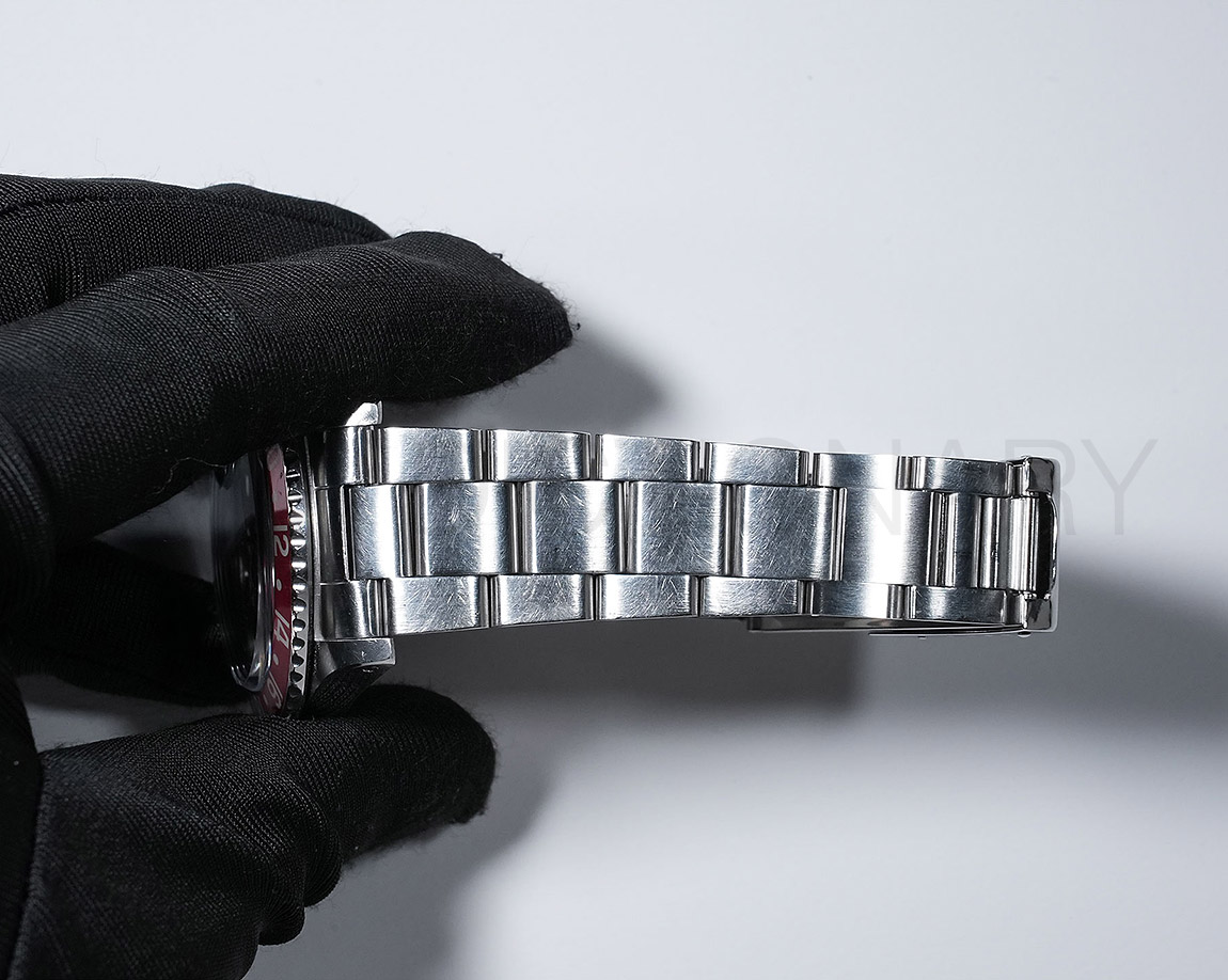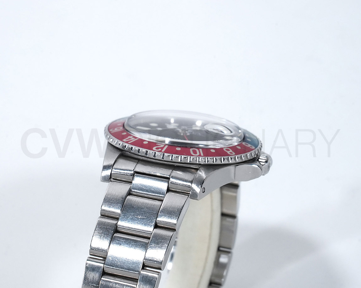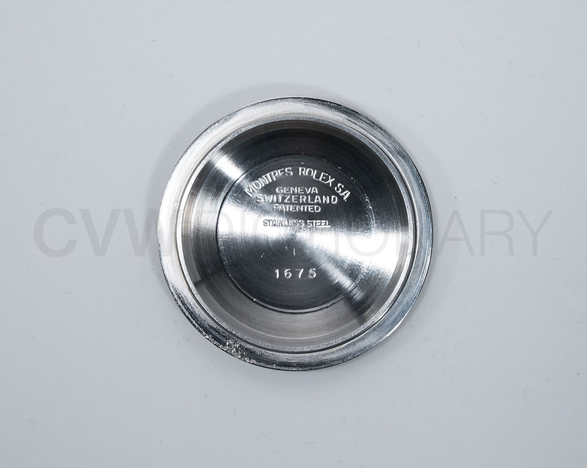 1960年から1980年頃まで製造されたロングセラーモデルのGMTマスター「Ref.1675」。フチなしのインデックスにプラスチック風防を備え、アンティークの雰囲気を存分に楽しむことができるモデルです。