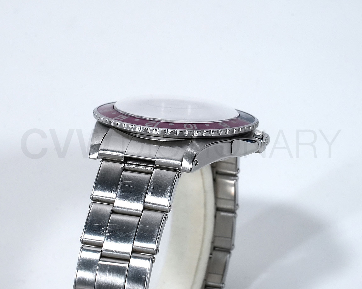 使用に伴うスレ、キズがございますが、ケースは太くしっかりとした個体です。年代の合ったミラーダイヤルのコンディションは非常に良く艶感は綺麗に残っており、夜光もオールトリチウムになります。年代の合ったフクシアインサート等、雰囲気があるヴィンテージGMTマスターになりますのでお探しの方は是非ご検討下さい。弊社提携工房にてオーバーホール済みの商品になります。
