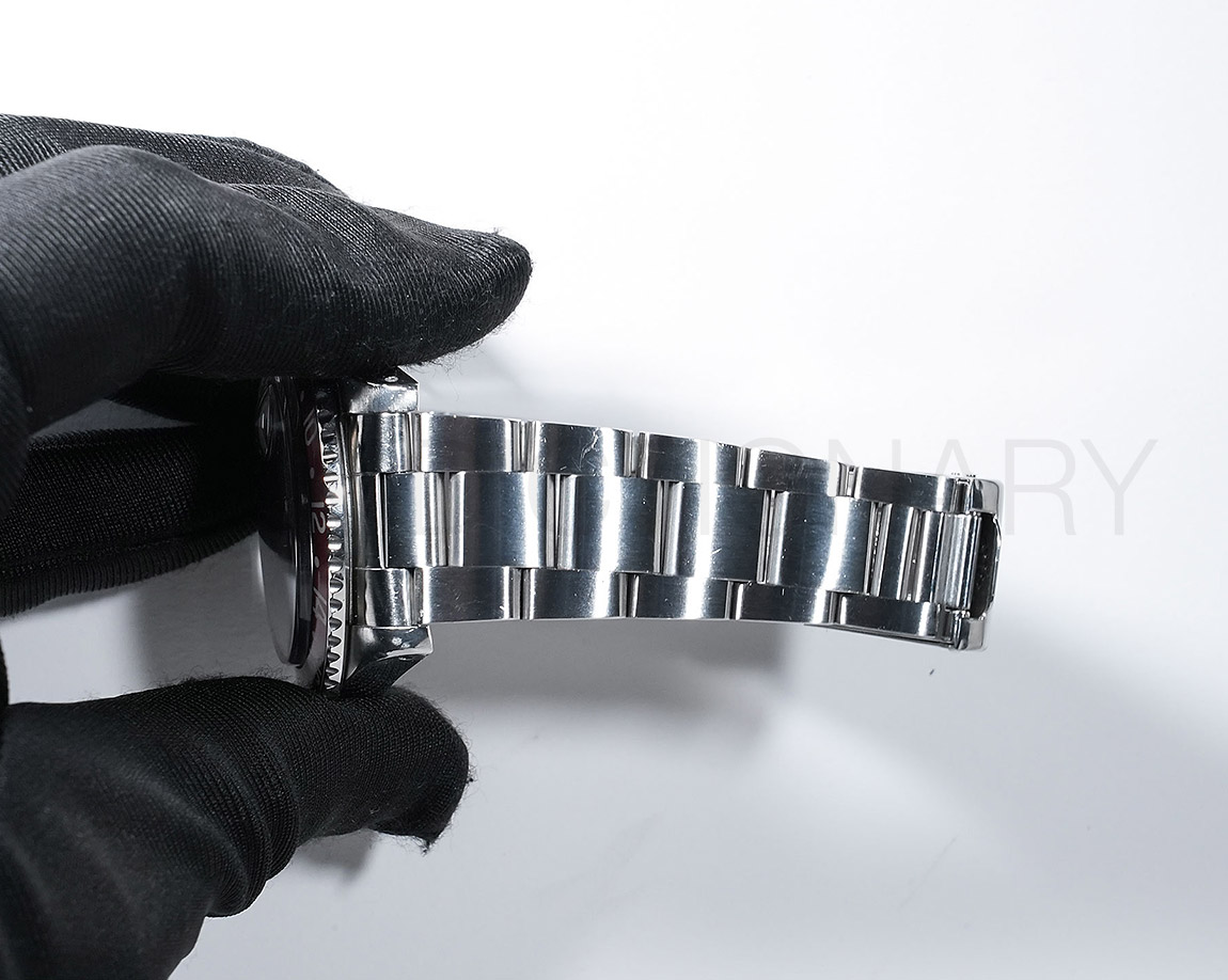 年代相応のスレキズがございますが、ケースラグは太くしっかりとしており、ブレスレットのヨレも殆ど感じられない良個体でございます。出回りが非常に少ないMK3ダイヤルは、文字盤が劣化した個体が多く見受けられますが、こちらの文字盤は劣化やキズが見られない非常に綺麗なコンディションを維持しております。針・インデックスはオールトリチウムで均一に焼けており、年代の合ったペプシカラーのベゼルインサートは発色の良い色味で、焼けたトリチウム夜光と相まってヴィンテージの良い雰囲気を醸し出しております。付属品にはUSジュビリーブレスと黒のオリジナルインサートが付属しており、気分で付け替えてお楽しみいただける魅力的な一本でございます。コンディションの良いMK3ラジアルダイヤルをお探しの方はこの機会に是非ご検討ください。