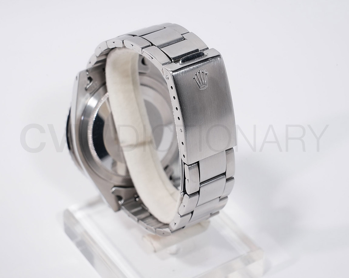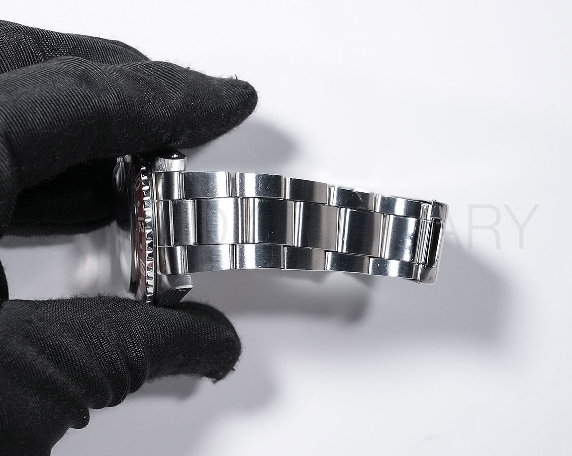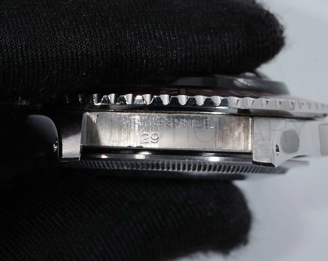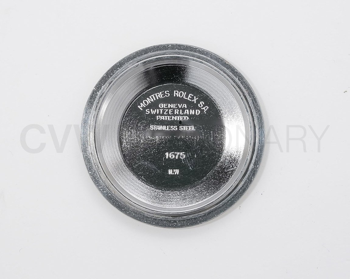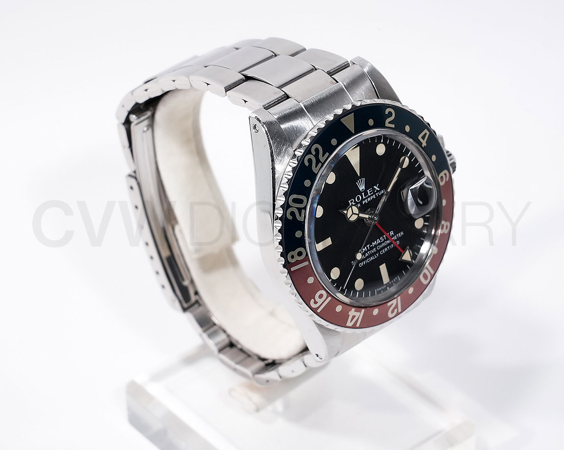 1960年から1980年頃まで製造されたロングセラーモデルのGMTマスター「Ref.1675」。フチなしのインデックスにプラスチック風防を備え、アンティークの雰囲気を存分に楽しむことができるモデルです。