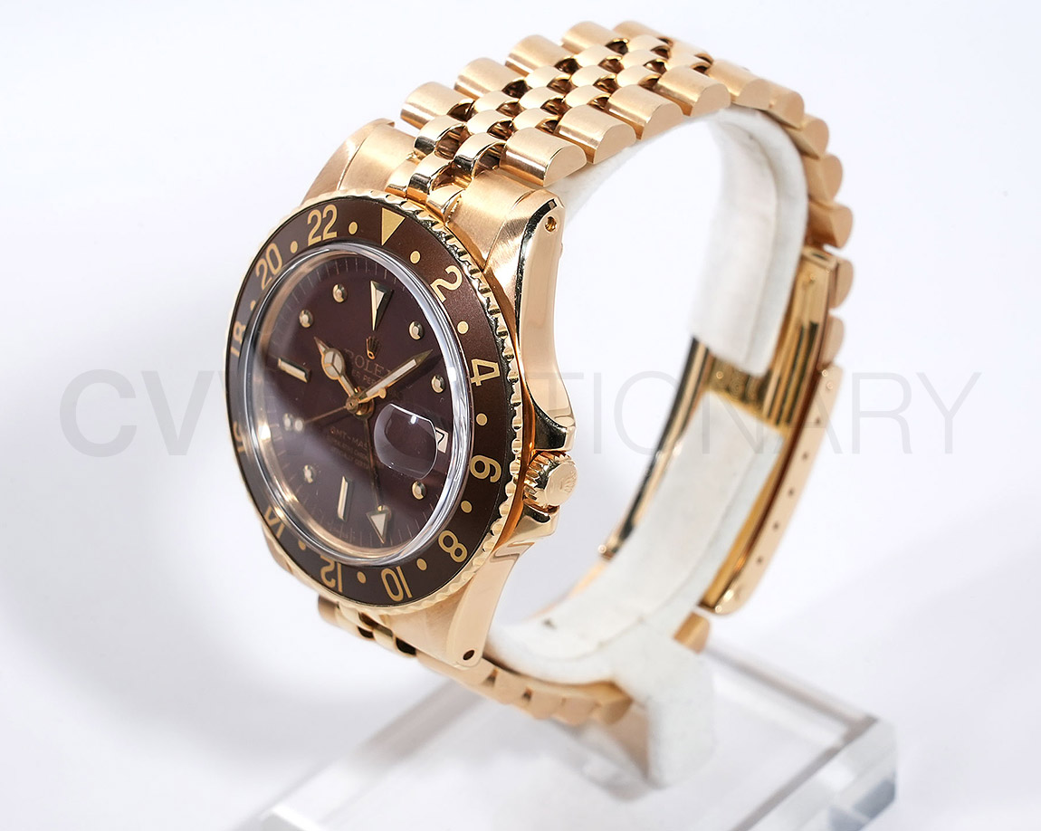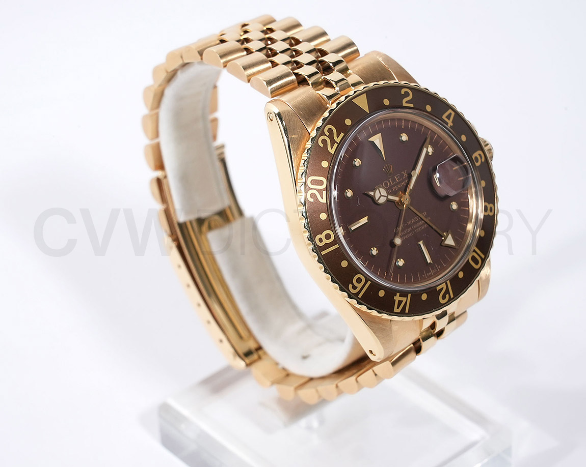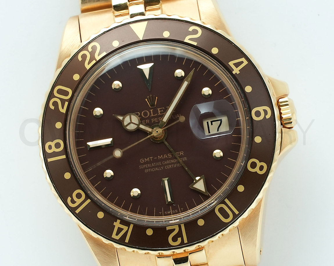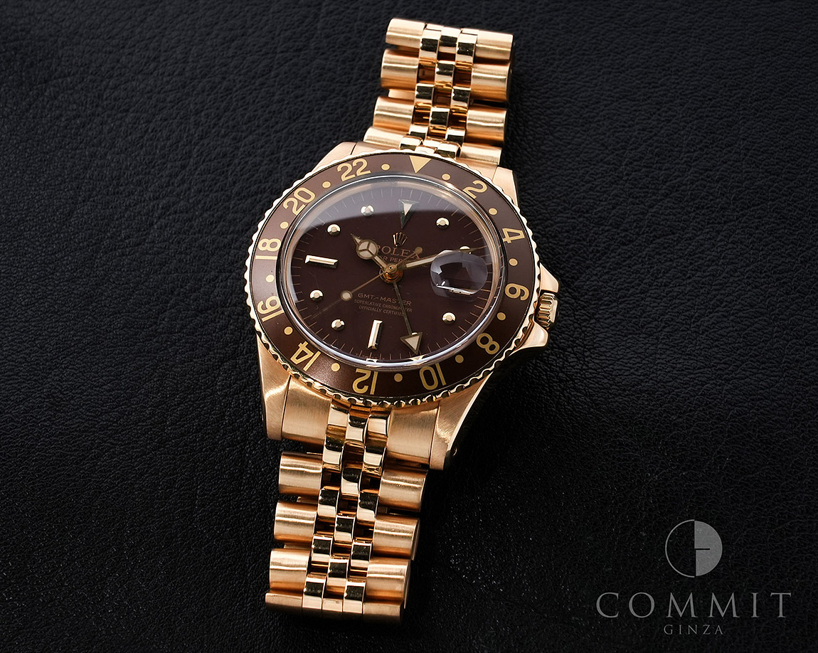 使用によるスレ、キズがございますが、ケース、ブレスとしっかりとした個体です。ダイヤルコンディションは非常に良くルーペレベルで綺麗な状態を維持しております。出回りが少ない4桁GMTマスターの金無垢モデルで雰囲気があるオススメヴィンテージモデルです。