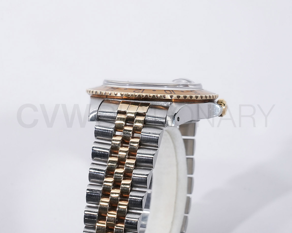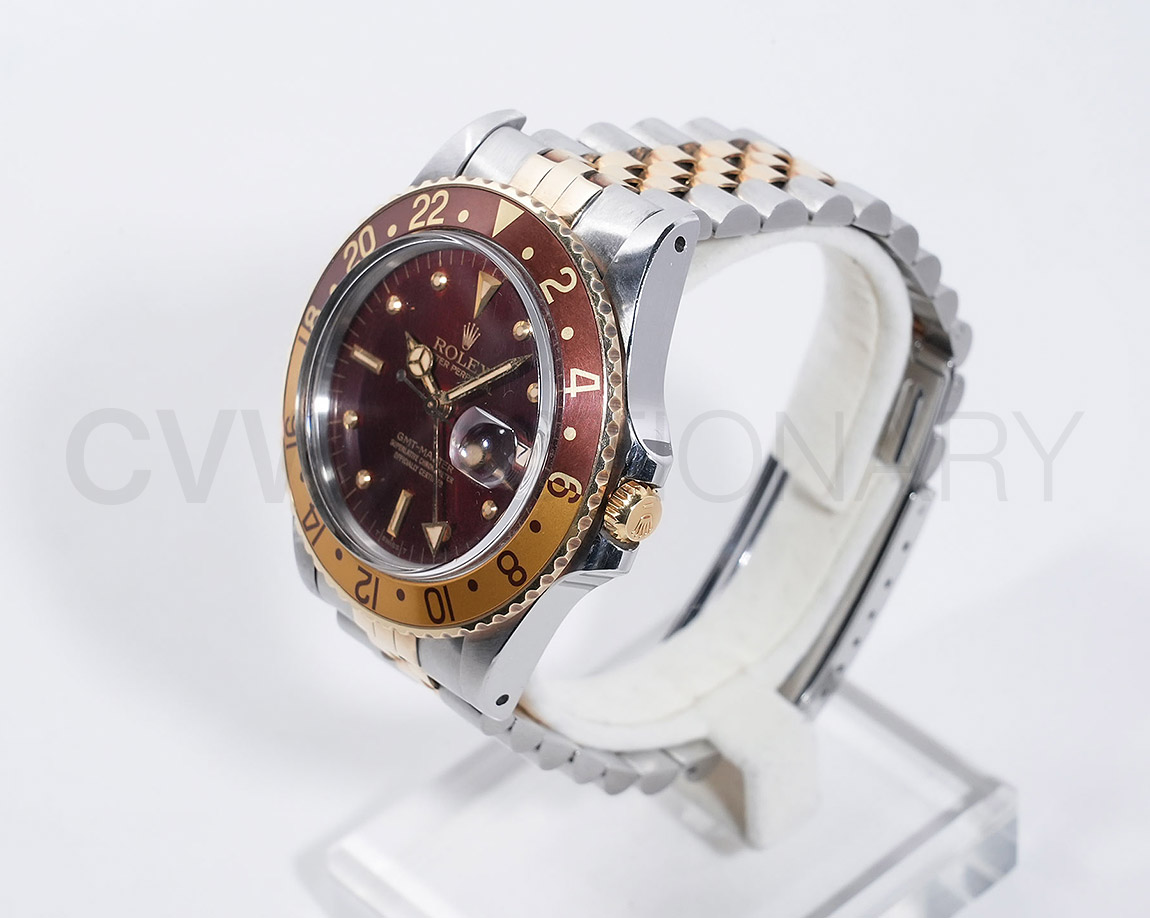 前モデルRef.1675/3からムーブメントはハイビート仕様のCal.3075に変更され、防水性能は50mから100mになったGMT-Masterのセカンドモデル。インデックスがアップライト仕様で人気の通称"フジツボダイヤル"が採用されています。