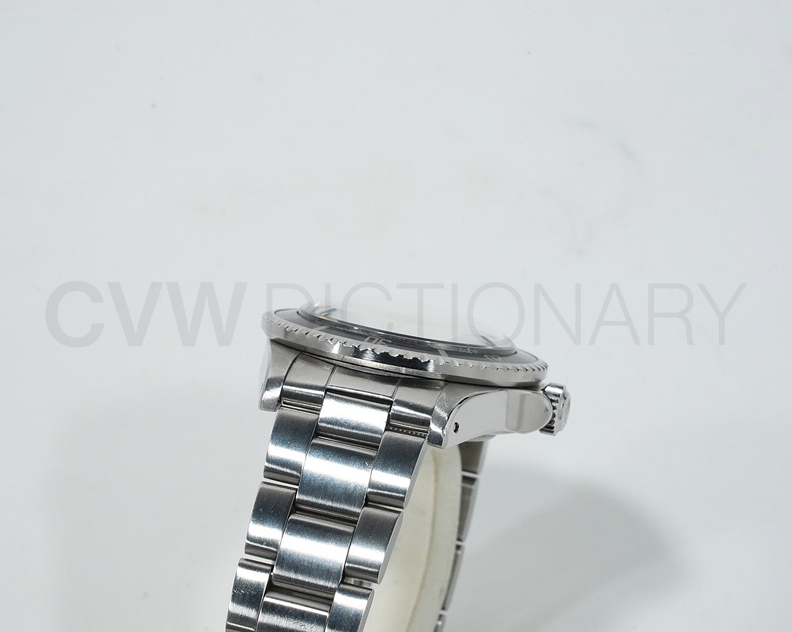 使用によるスレ、小キズがございますが、ケースは太くエッジがしっかり立った良個体です。希少性が高いレイルダイヤルのコンディションも非常に良く、トリチウム夜光が綺麗にクリーム変化した個体です。当時の箱(レフシール付き)、保証書、冊子と揃った希少商品になりますのでお探しの方は是非ご検討下さい。