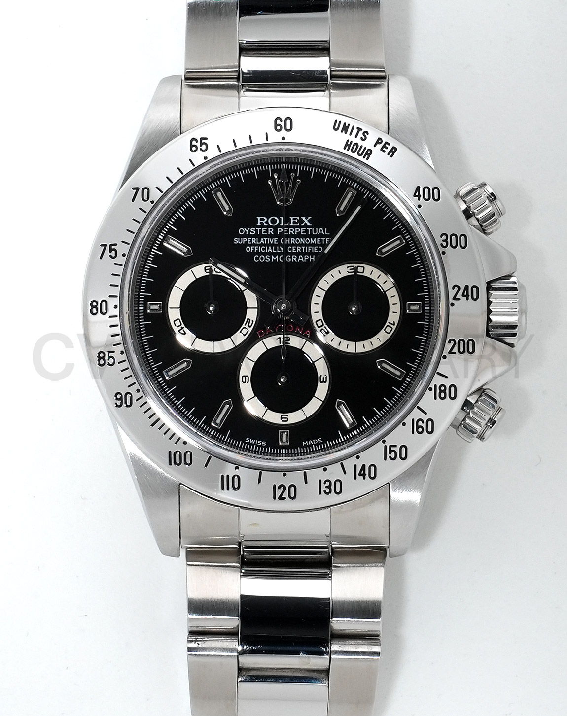 ゼニス社の名機エル・プリメロをロレックス社で改良したCal.4030で当時の時計業界では評価を得たロレックス社ですが、完全自社製クロノグラフムーブメントを開発するのが悲願でした。その夢を叶えたのがこの時計に搭載されているCal.4130です。Ref.11系デイトナの初期モデルに存在するこの時計のような配色のアイボリーダイヤルは、密かに市場評価が上がっており今後更なる期待を持てます。MK2ダイヤルで保存状態も申し分なく、綺麗に強めの変色が入った雰囲気のある個体です。