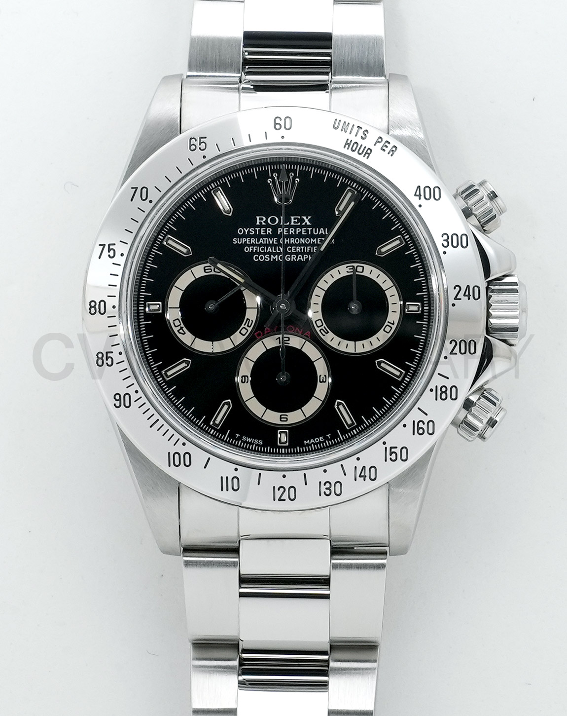 ROLEX OYSTER COSMOGRAPHの文字が少し中心に向けて配置されているローレターダイヤルです。加えてオールトリチウム、デイトナ表記無しシグマ表記ダイヤルです。交換プッシャーなのは少し残念なところですが、ダイヤルコンディションは良好の個体です。