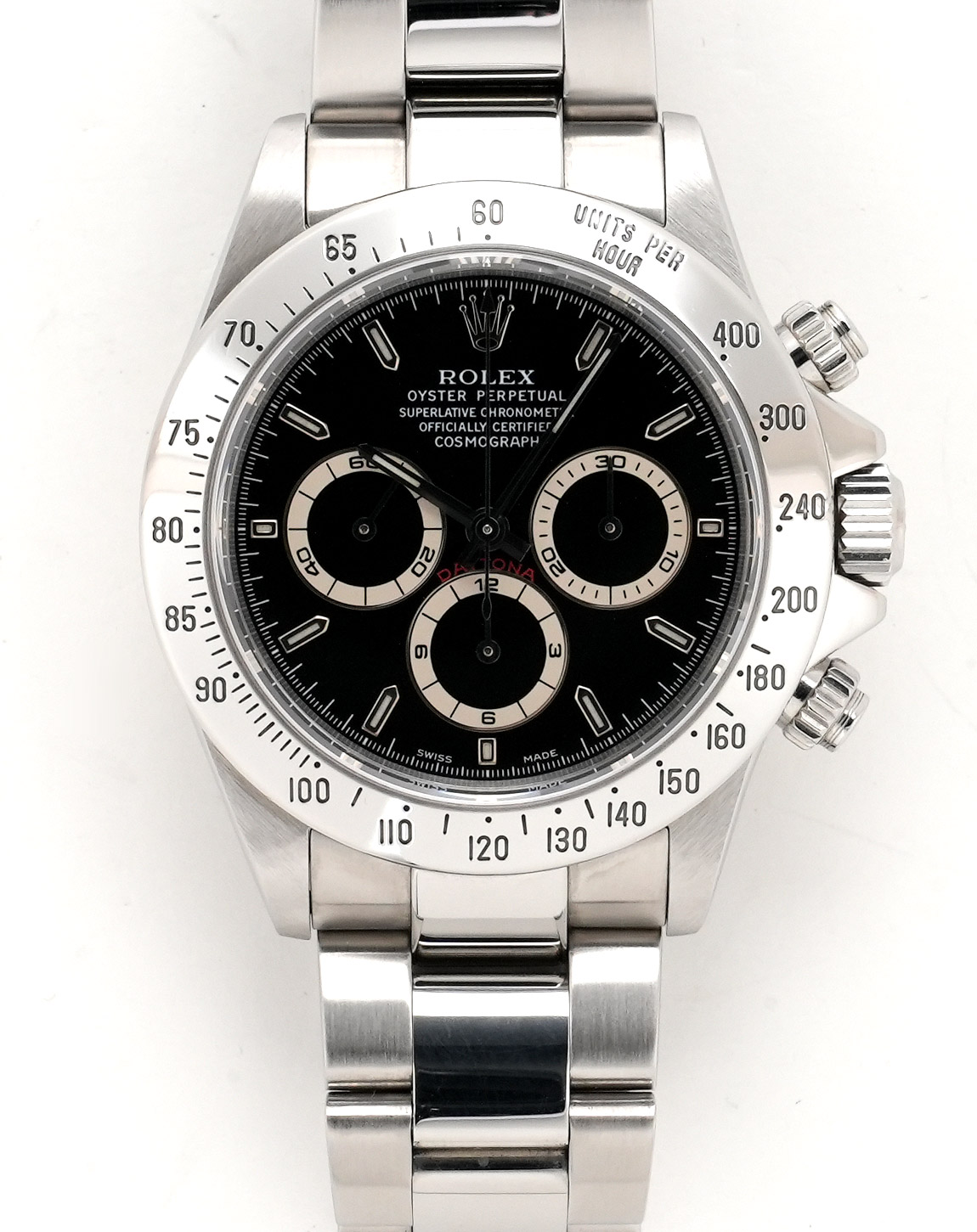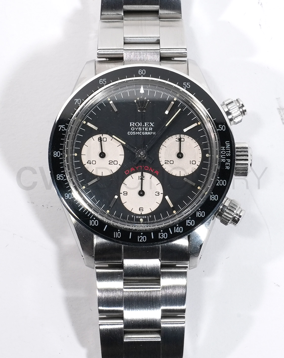 こちらはオールトリチウムでコンディションは良好です。MK3ベゼル、MK2プッシャーとまさに申し分なしの逸品です。Cal.727は、Cal.722-1の後継機種として1960年代中頃~1980年代後半、手巻きデイトナのRef.6262、Ref.6264等とRef.6263、Ref.6265等に搭載された傑作ムーブメントとして語り継がれています。様々なブランドのクロノグラフモデルに採用されたバルジューCal.72をベースにロレックスが振動数を毎時18,000から毎時21,600へと独自改良を行ったことでも知られています