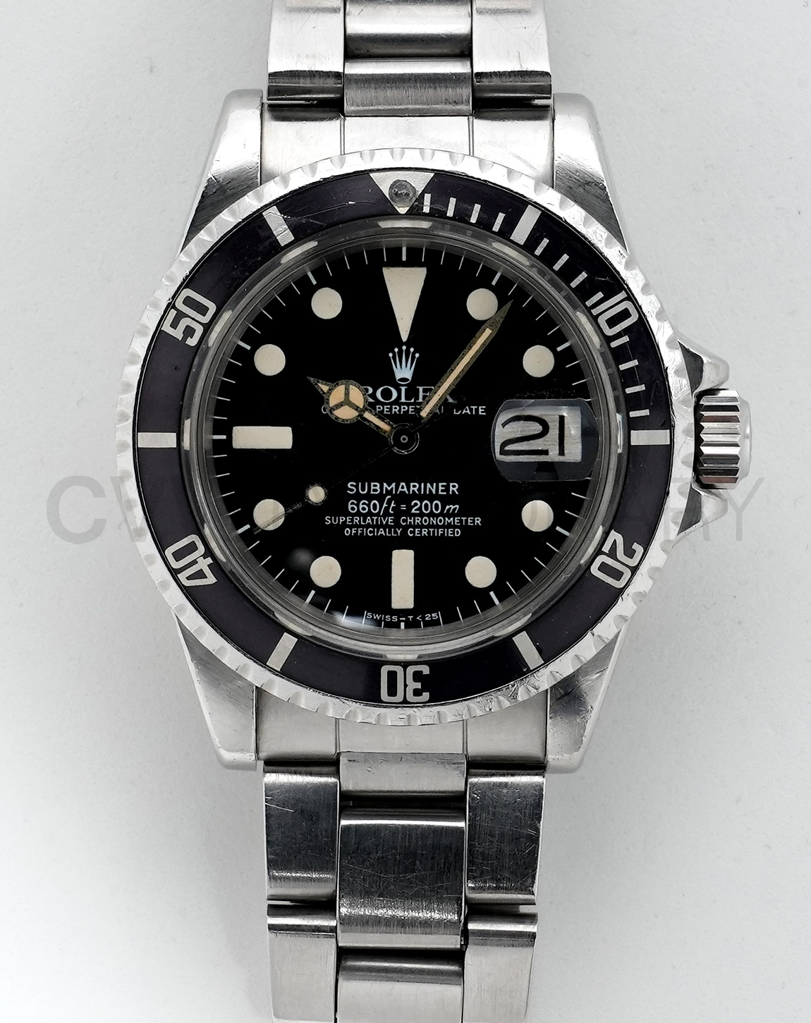 過酷な環境で活躍する真のプロダイバー向けに開発された「サブマリーナー」は、潜水時間を計測するための回転ベゼルが備えられた世界初のダイバーズウォッチです。こちらはインデックス夜光に夜光にフチがある「フチあり」モデルとなっており、シンプルでクラシックなデザインが人気のモデルです。