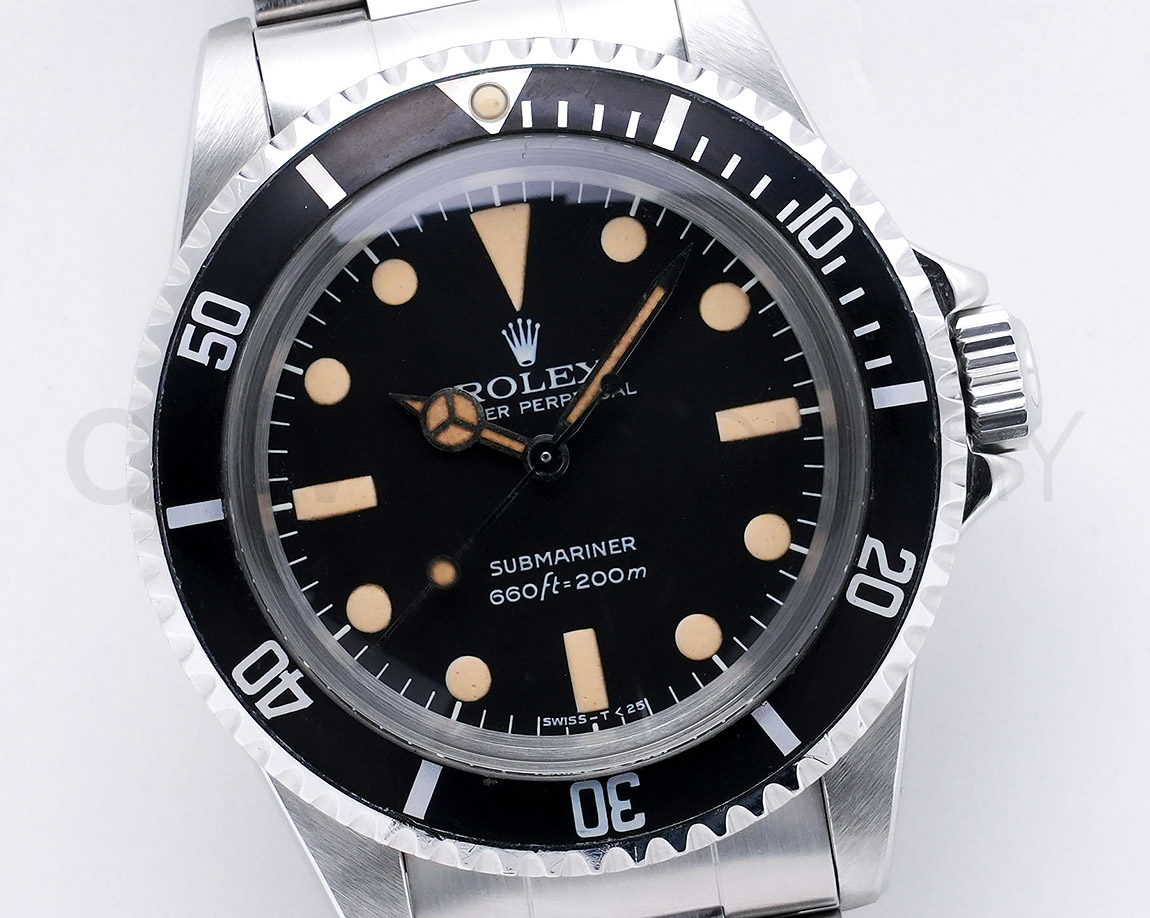 使用によるスレ、キズがございますが、ケースは太くエッジがしっかり立った優良個体です。年代の合ったダイヤルのコンディションも良く、インデックス夜光は綺麗にクリーム変化しております。ブレスコンディションも良くトータルバランスが取れたオススメフチ無しサブマリーナーになりますので、お探しの方は是非ご検討下さい。※ルミナスポイントは社外品になります。